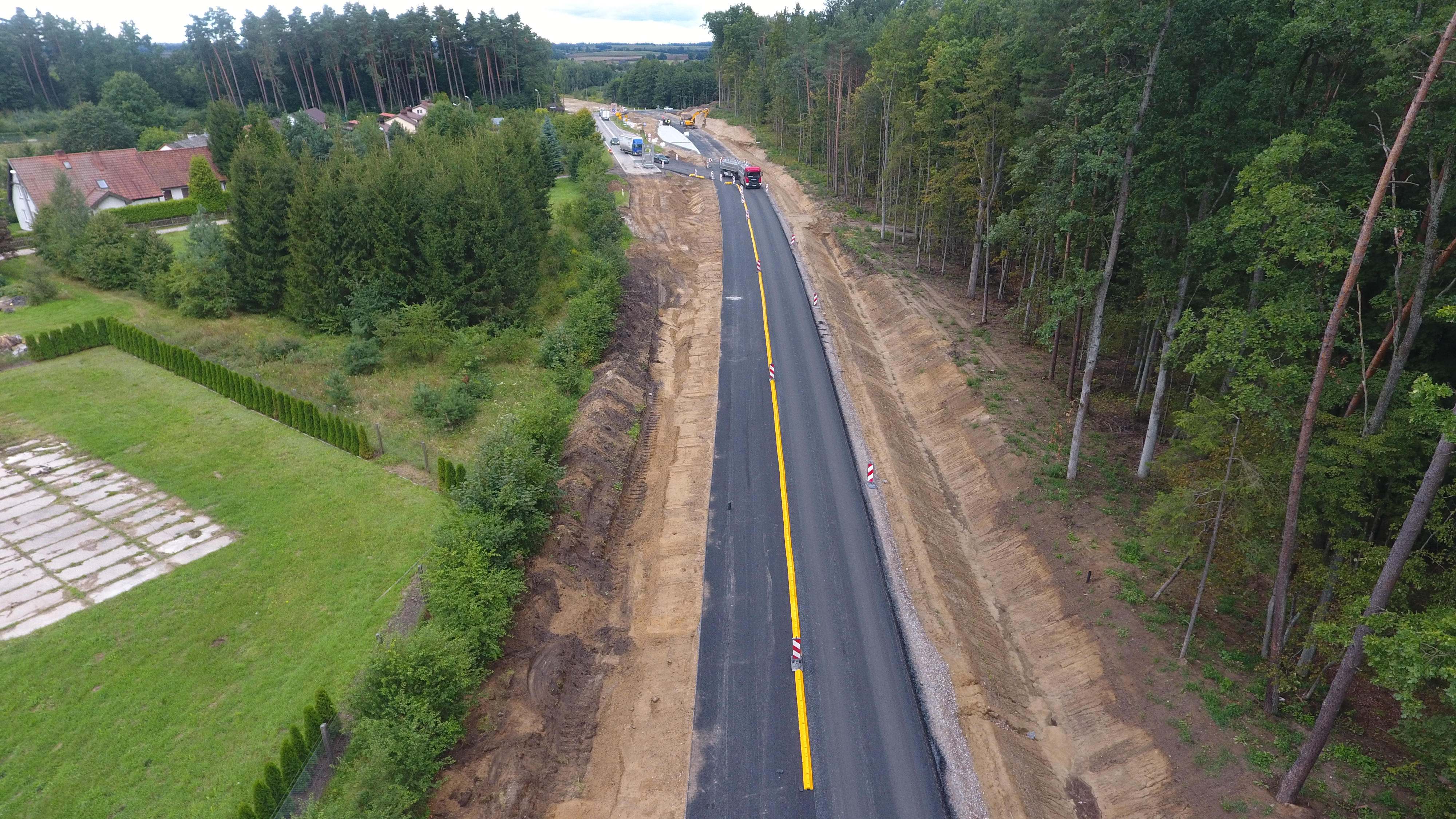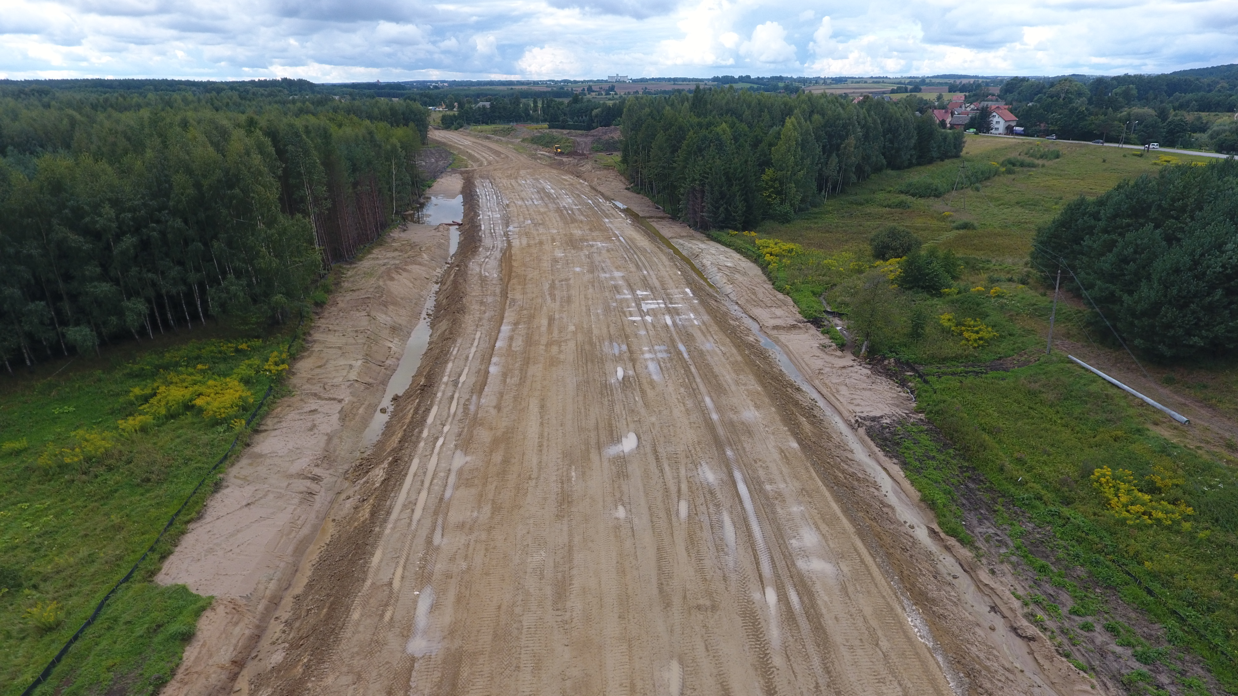Obecnie prowadzone są roboty branży drogowej, telekomunikacyjnej elektrycznej oraz sanitarnej. Zakończono usuwanie karp po wyciętych drzewach (z wyjątkiem odcinków objętych badaniami archeologicznymi). Zdjęcie warstwy humusu wykonano w około 70 proc. Wymieniono grunt już na dwóch z trzech obszarów, gdzie taki zabieg jest konieczny. Obecnie trwają prace przy wykopach i nasypach oraz stabilizacji gruntu. Wykonany został odcinek próbny podbudowy bitumicznej i warstwy wiążącej. Zaawansowanie robót na koniec sierpnia wynosi ok. 23,9 proc.