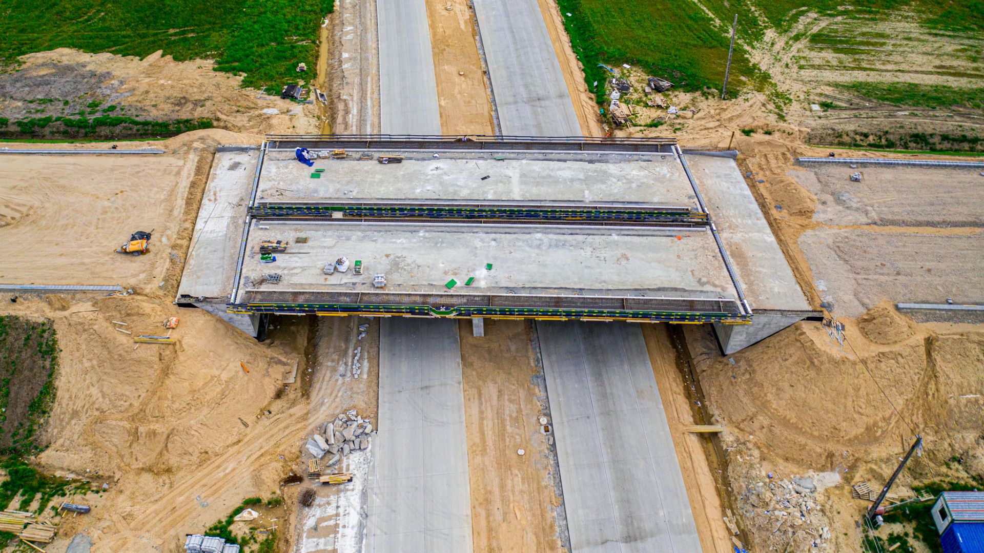 Prace budowlane na odcinku o długości ok. 21,5 km zaczęły się w październiku 2019 r. Na budowie wykonano znaczącą część robót ziemnych, a roboty konstrukcyjne na większości obiektów mostowych zostały zakończone. W nadchodzących tygodniach planowana jest kontynuacja robót nawierzchniowych, prac na ustrojach nośnych obiektów mostowych oraz w pozostałych branżach. Zaawansowanie rzeczowe całej inwestycji wynosi na koniec czerwca 2021 r. około 68 proc., a nawierzchni betonowej około 31 proc. Przewidywany termin zakończenia to IV kwartał 2021 r.