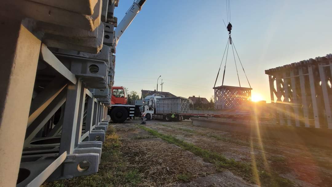Duże elementy mostu będą na razie składowane poza placem budowy i w miarę potrzeb wojska kolejne części będą dowożone na miejsce. W pobliżu placu budowy trwa czyszczenie terenu, występuje tam zwarta zabudowa, więc nie ma przestrzeni na to, żeby wszystko odbywało się w jednym miejscu.