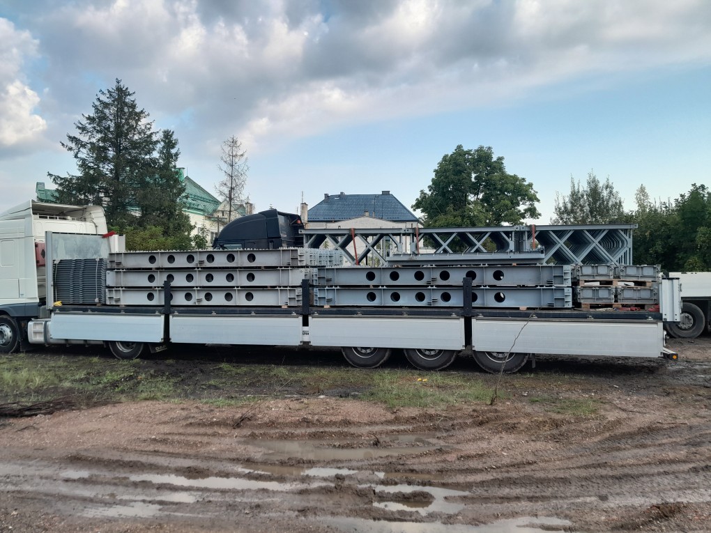 Trwa sprzątanie placu pod budowę tymczasowego mostu nad rzeką Biała Głuchołaska. Na miejsce dotarły pierwsze transporty z elementami jego konstrukcji, a kolejne są w drodze. Zależy nam, żeby tymczasowa przeprawa została uruchomiona w możliwie krótkim czasie, aby ułatwić komunikację w Głuchołazach i na sąsiednich terenach, które objęła powódź.