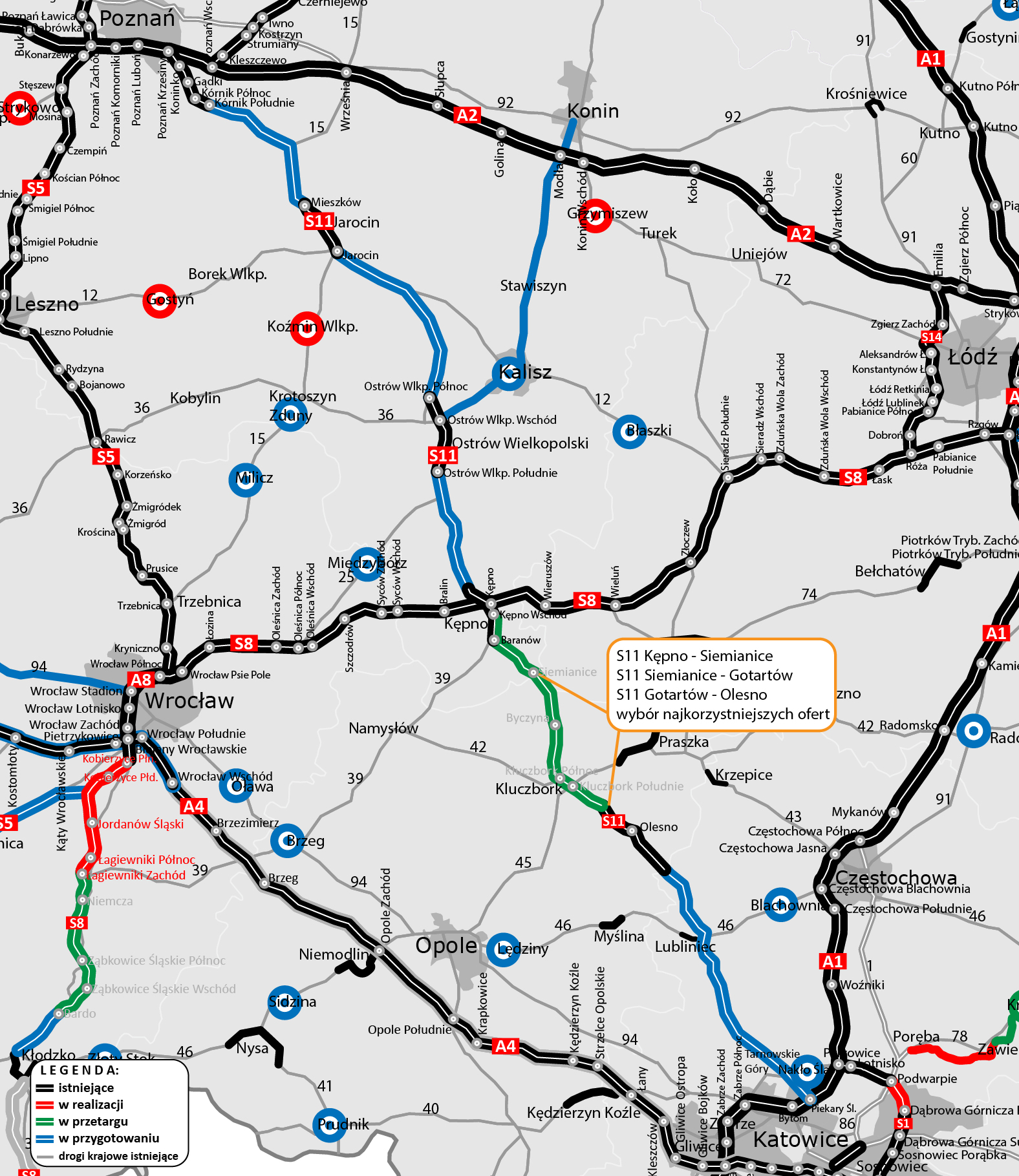 Coraz bliżej do realizacji kolejnych odcinków S11 na południe od Kępna