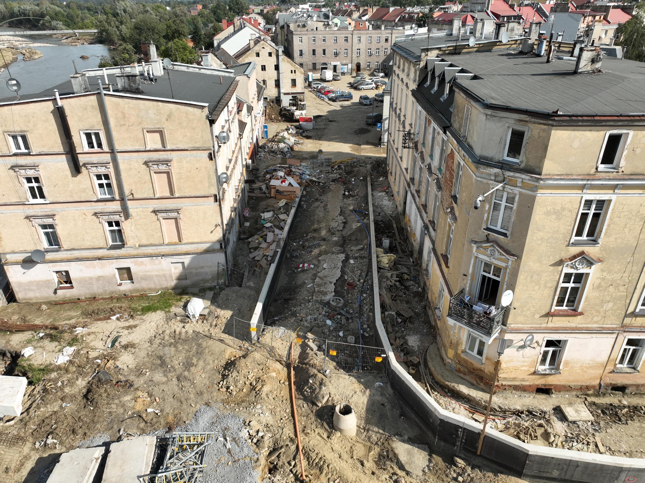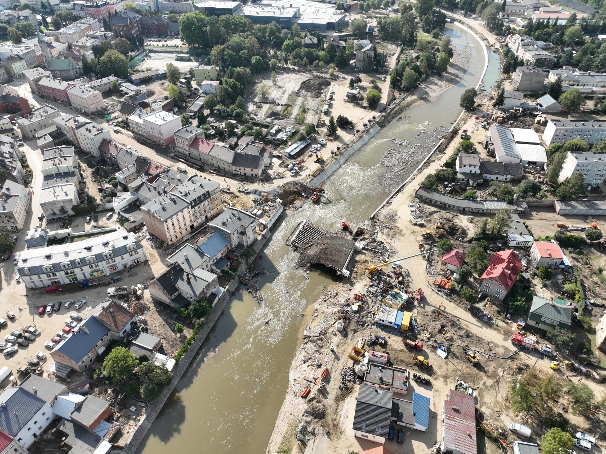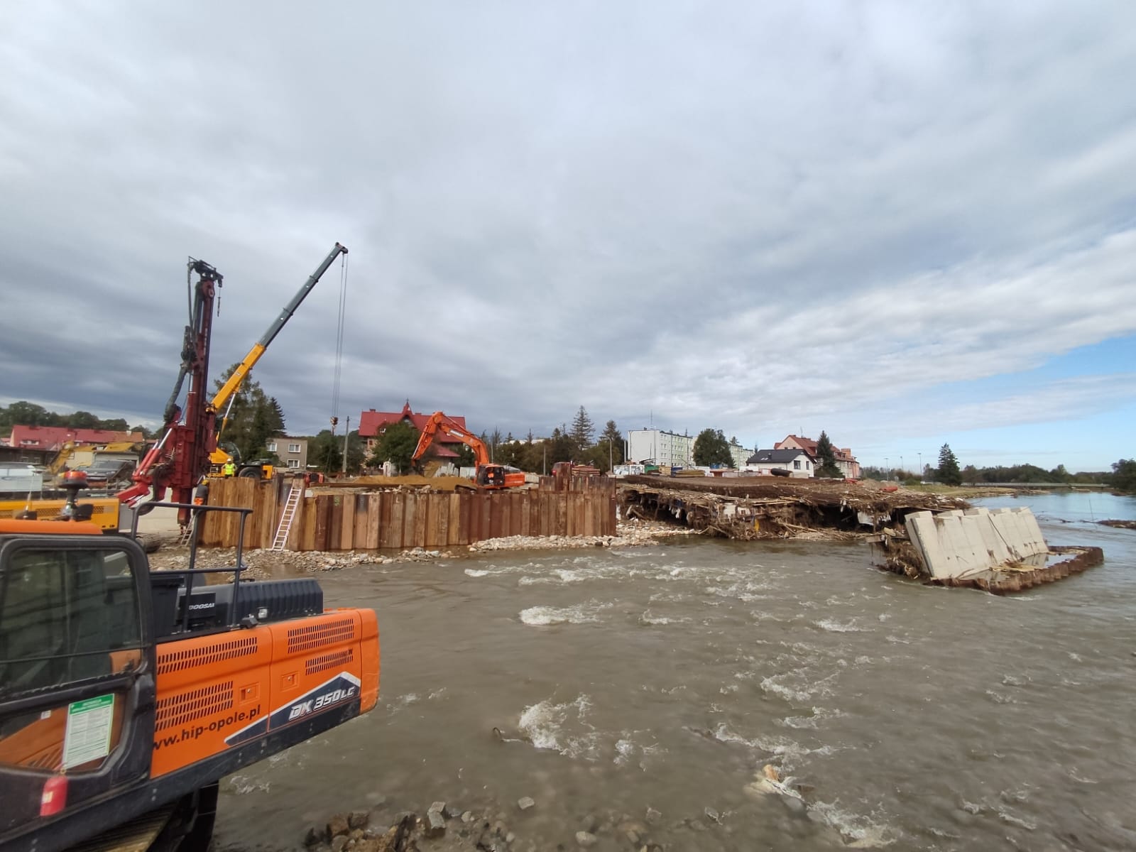 Najtrudniejsza sytuacja występuje w Głuchołazach, gdzie woda zalewając miasto, zabrała ze sobą tymczasowy obiekt wraz z konstrukcją obiektu docelowego.
