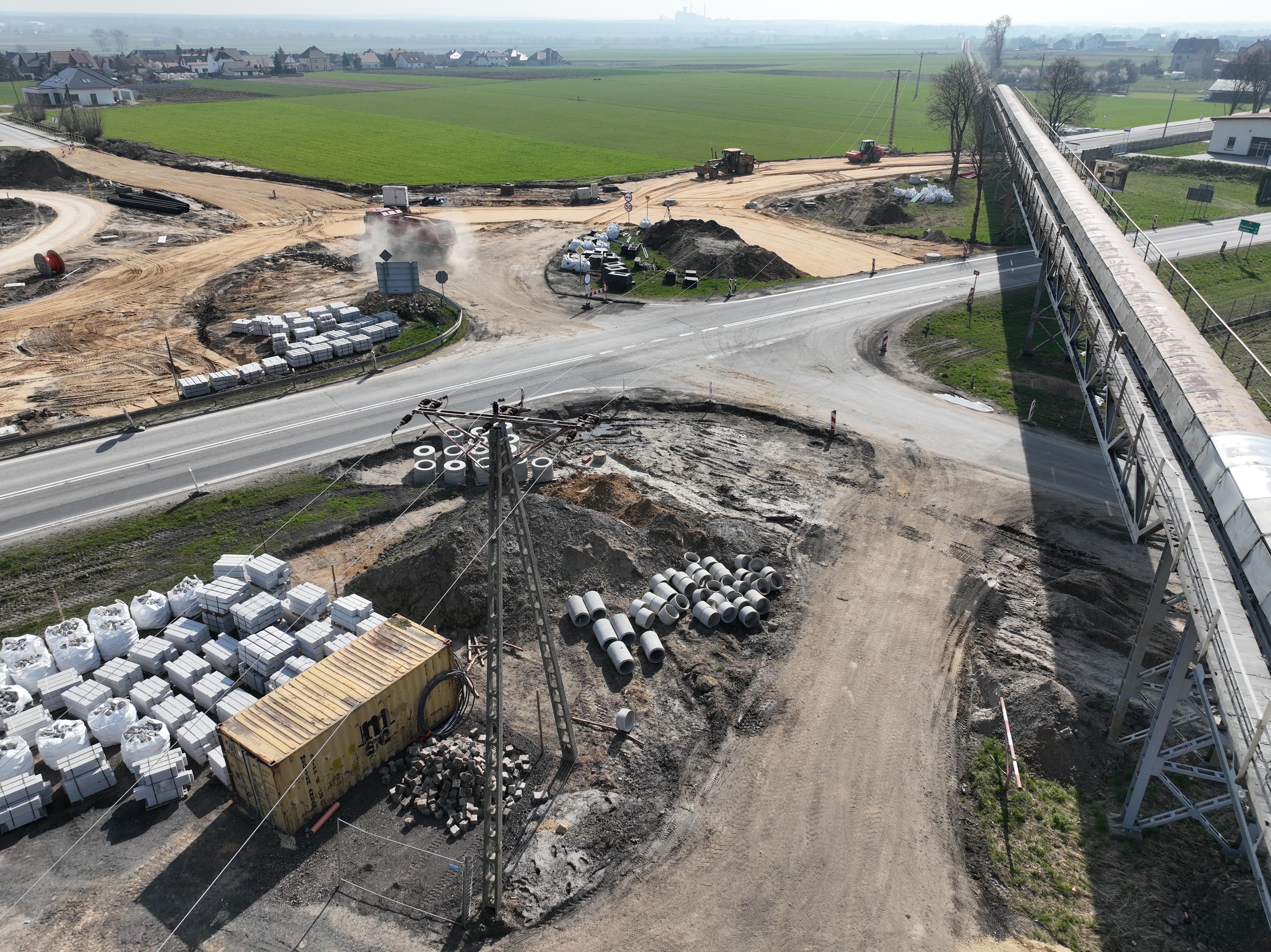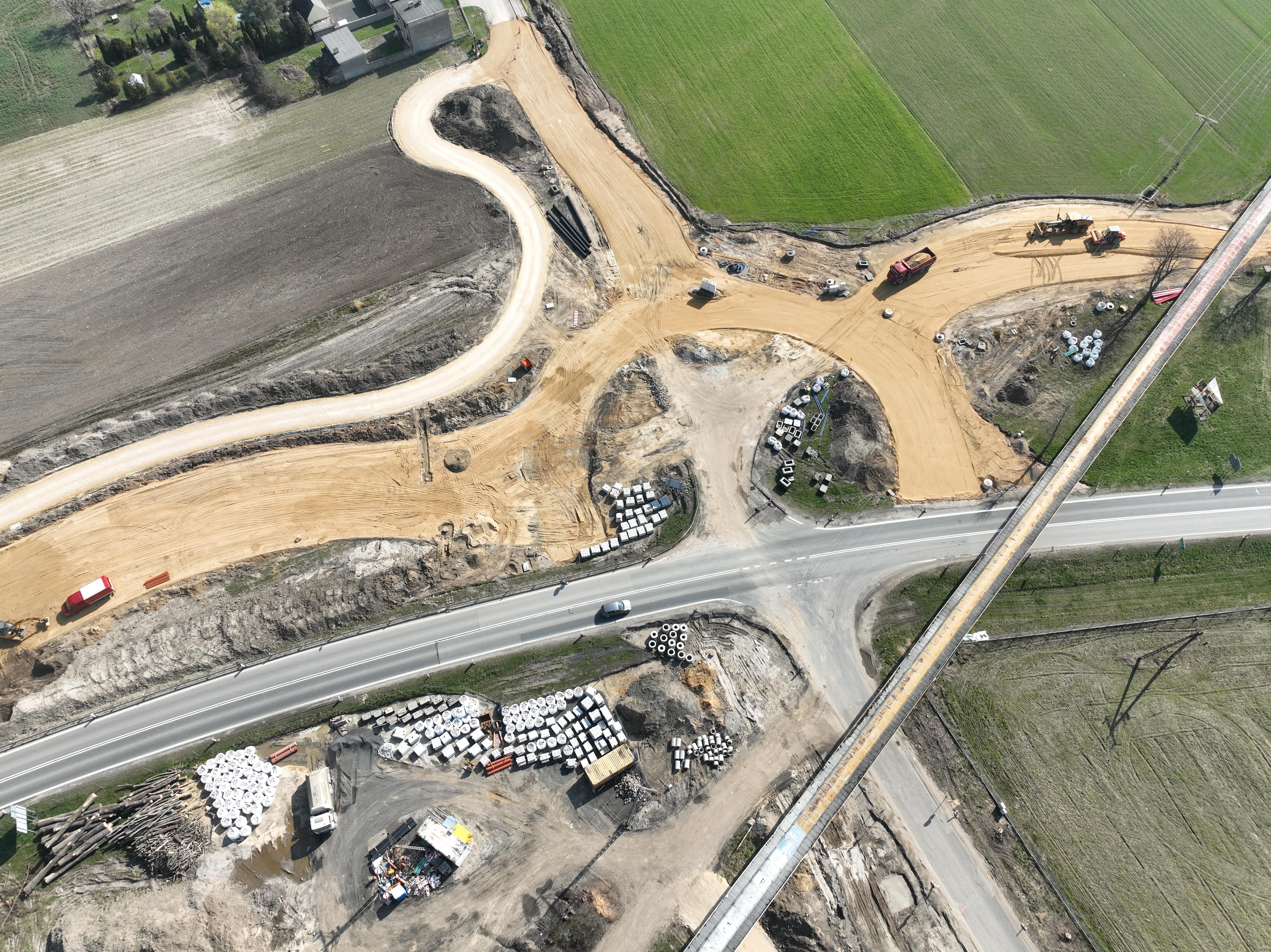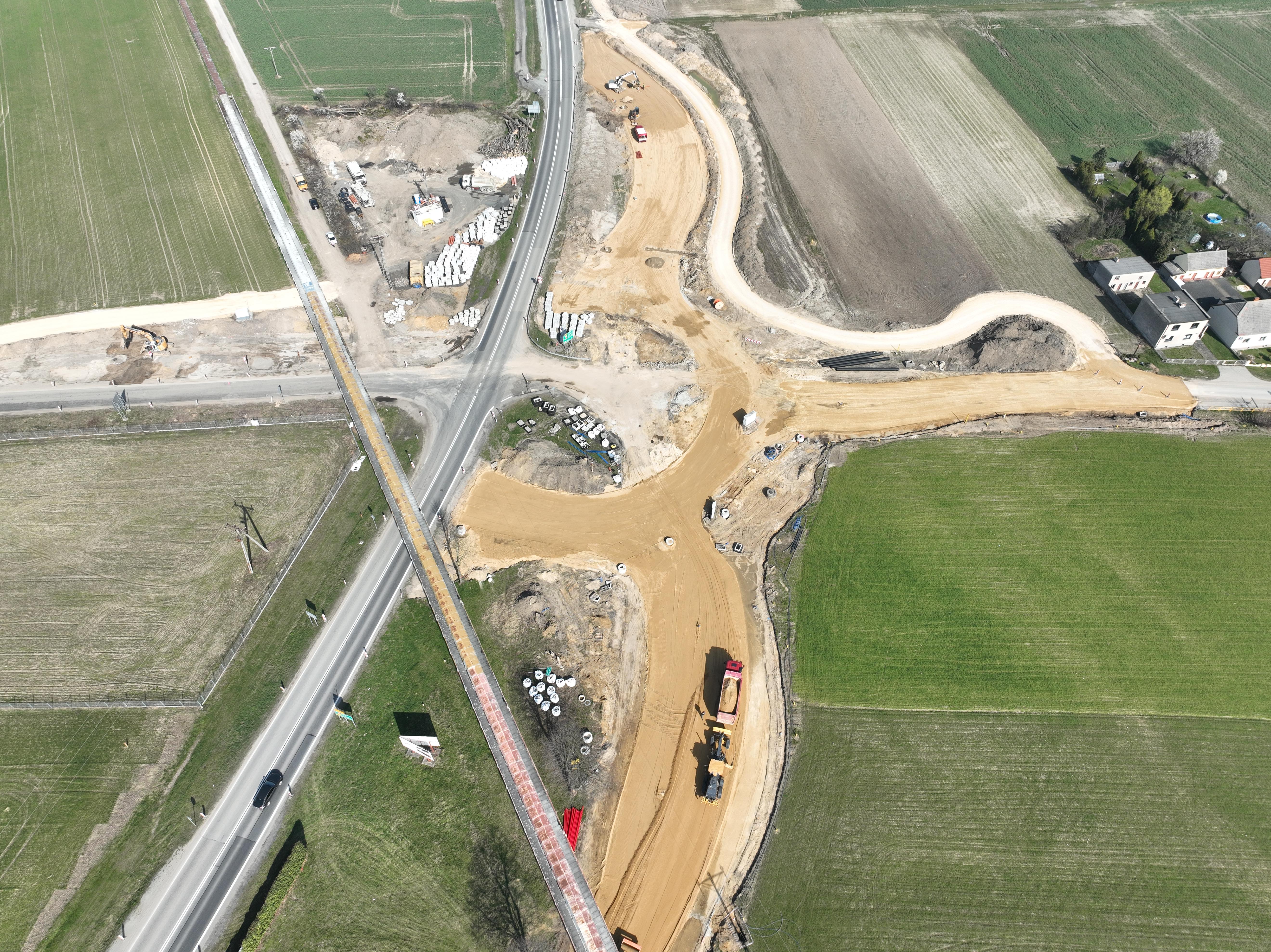 Poza korektą dwóch wlotów, wybudowano połowę tarczy ronda, gdzie podobnie jak na wlotach zakończono prace przy układaniu warstwy podbudowy z kruszywa. Wykonano także prace brukarskie związane z układaniem krawężników. W najbliższym czasie rozpoczną się na tym odcinku prace bitumiczne.