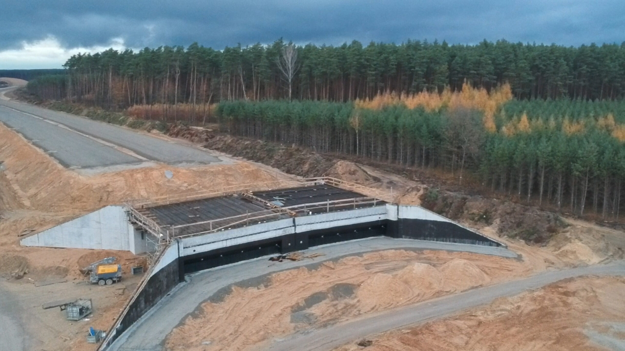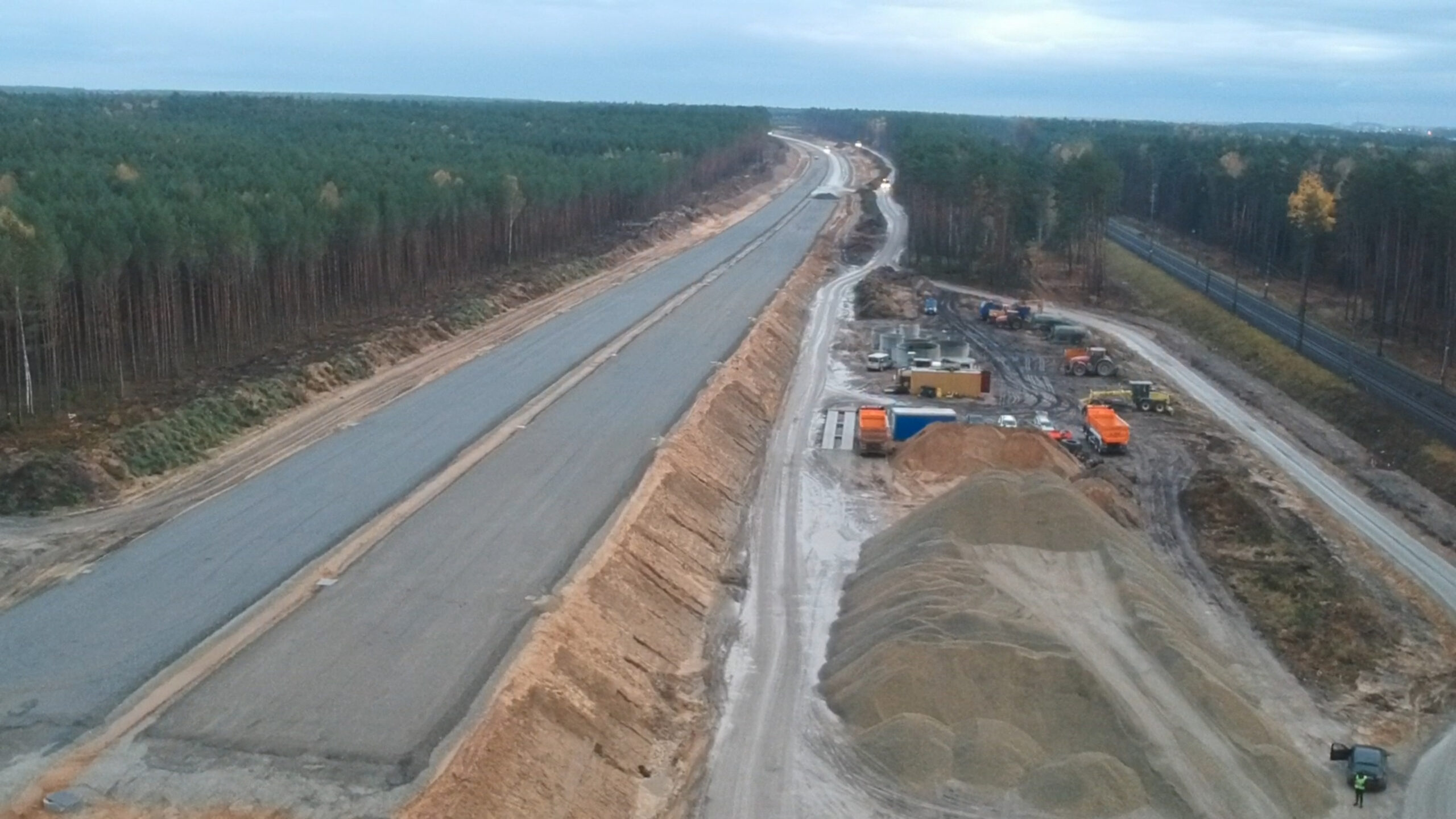 Obecnie warunki atmosferyczne pozwalają na całej długości zadania prowadzić roboty budowalne zarówno w zakresie obiektów inżynieryjnych, jak i części drogowej.