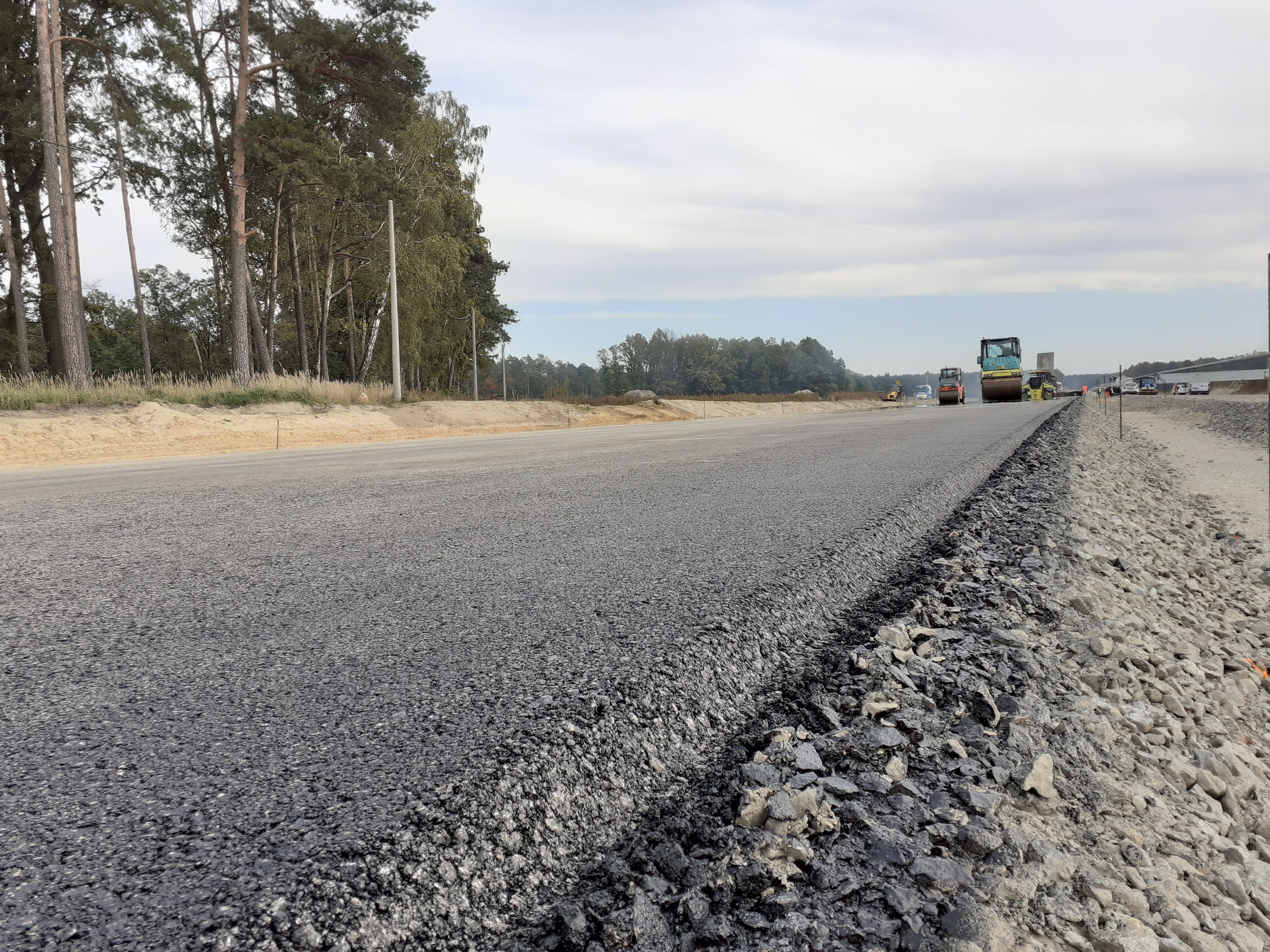 Wykonawca rozpoczął prace przy układaniu masy bitumicznej na początkowym, blisko kilometrowym odcinku przyszłej obwodnicy. Realizowana jest pierwsza warstwa w zakresie warstw bitumicznych konstrukcji nawierzchni, tj. podbudowa zasadnicza. W najbliższym czasie planowane jest również rozpoczęcie prac dla warstwy wiążącej. Do końca bieżącego roku wykonawca planuje wbudować jeszcze 35 000 ton mieszanek mineralno-bitumicznych na kilku najbardziej zaawansowanych odcinkach.