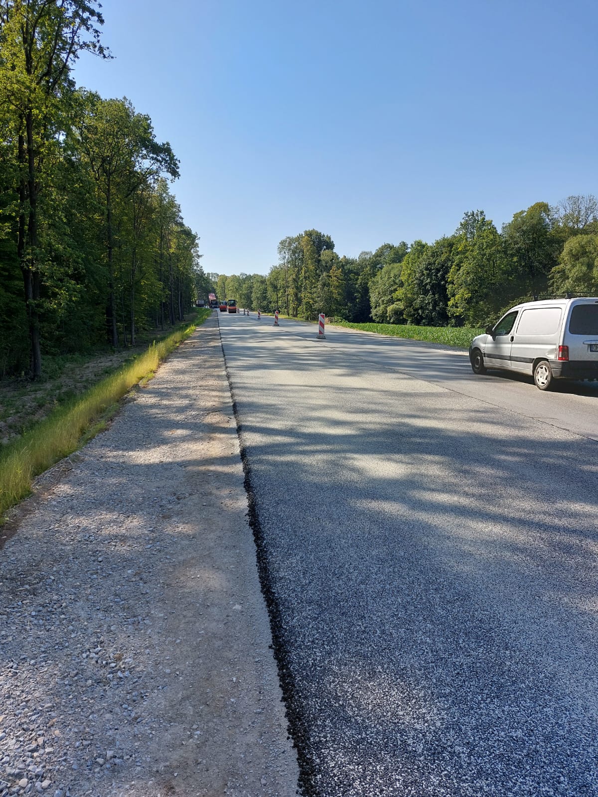 Wymiana konstrukcji drogi wraz z warstwą wiążącą jest już widoczna na niemal całej długości rozbudowywanego odcinka drogi, a zakres tych prac wynosi około 90 proc. Wybudowano ścieżkę pieszo-rowerową na odcinku od cmentarza do skrzyżowania w centrum miejscowości, a na odcinku od końca obwodnicy Nysy do cmentarza widoczna jest już dodatkowa jezdnia do obsługi przyległego terenu. Od ronda kończącego obwodnicę Nysy do okolic cmentarza wykonywana jest warstwa ścieralna z mieszanki SMA. Ułożono już nowe chodniki, wykonano umocnienie rowów odwodnieniowych.