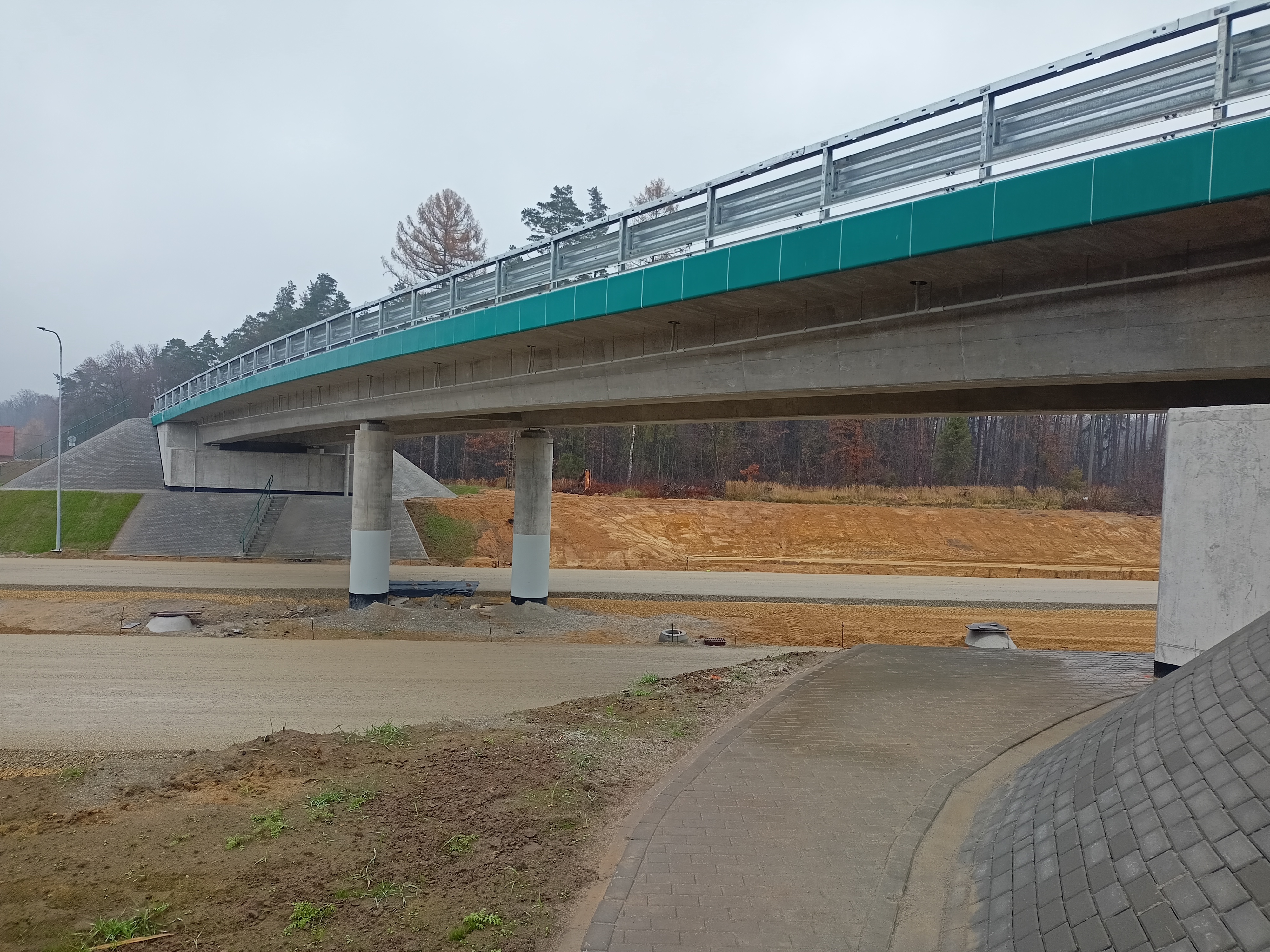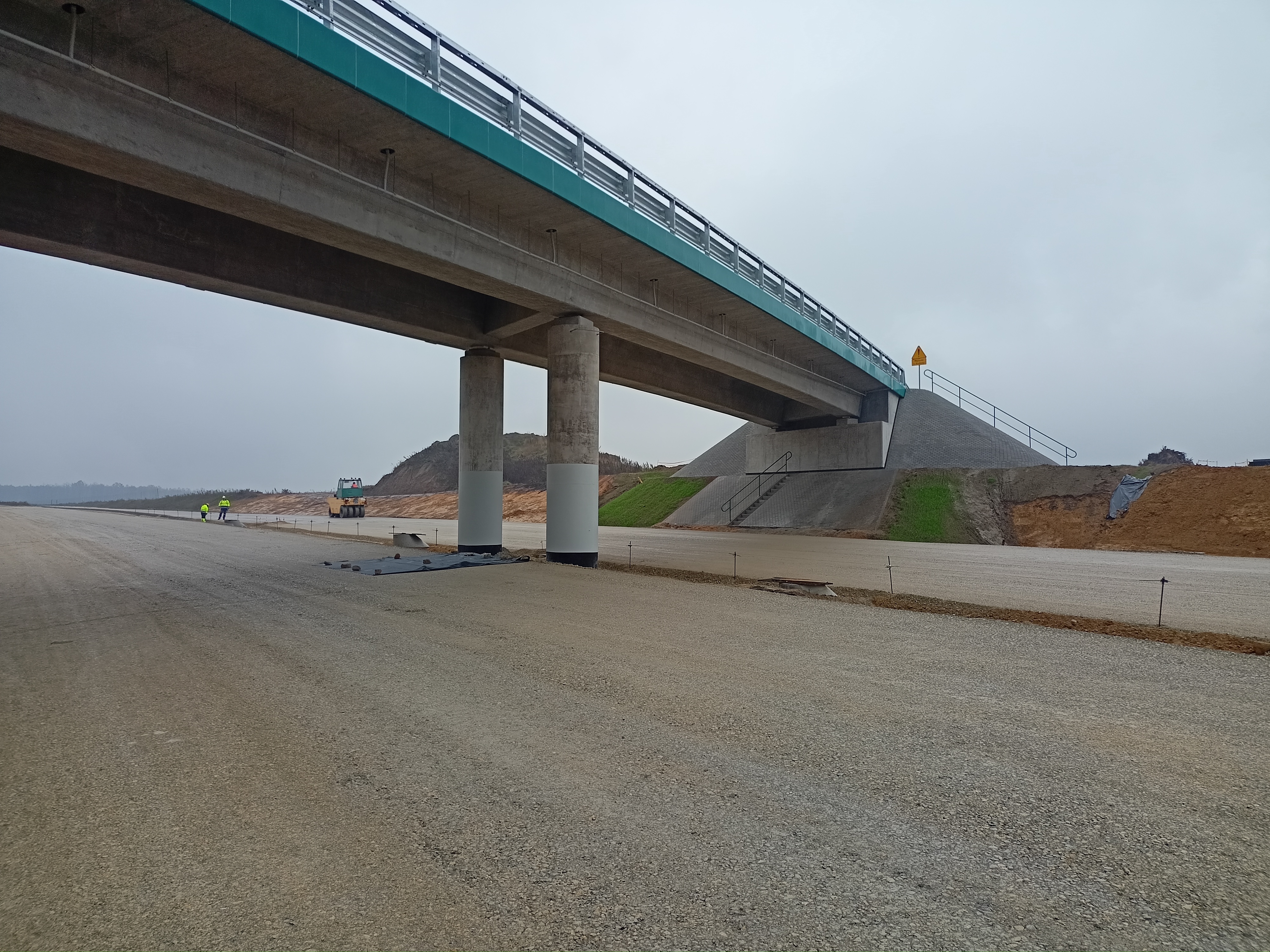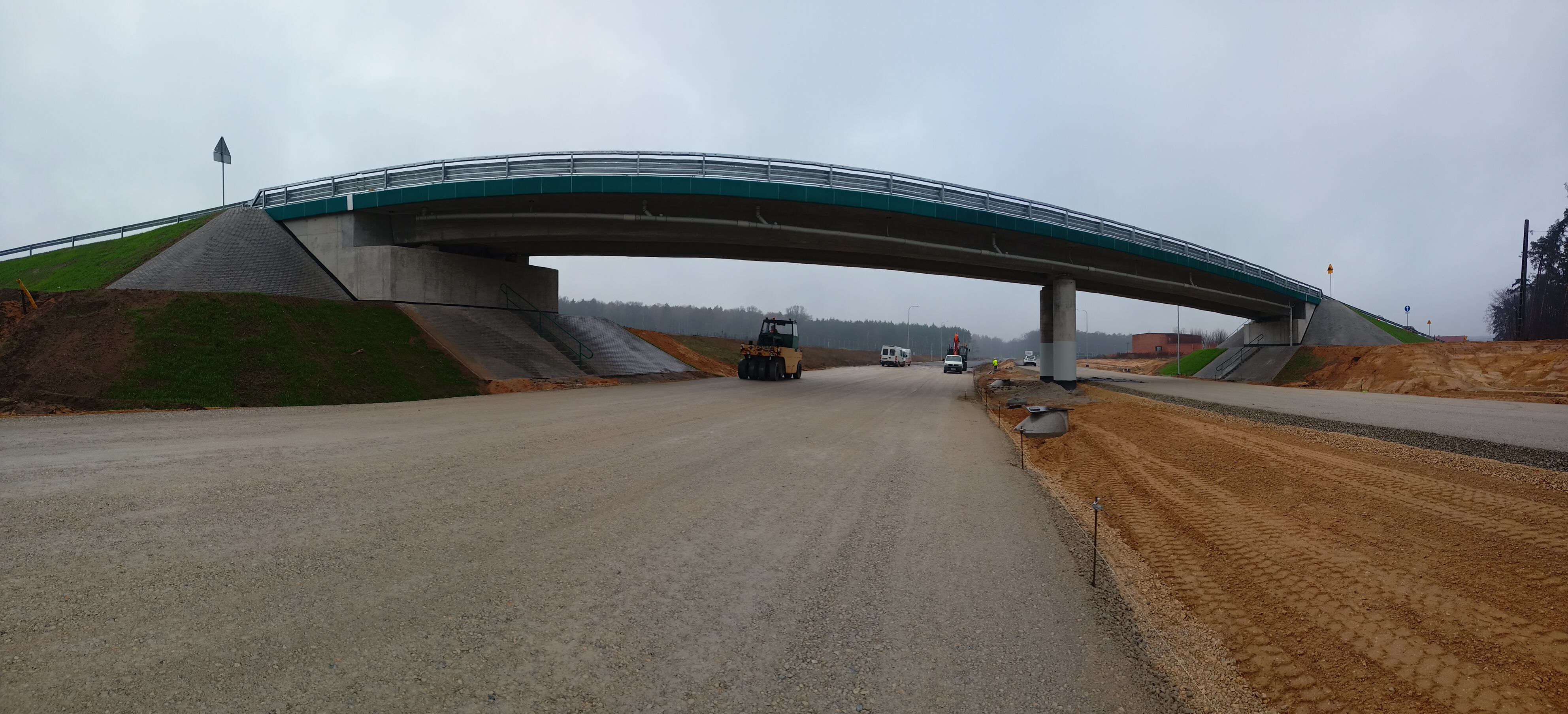 Roboty ziemne w zakresie wykopów, nasypów oraz wzmocnienia podłoża w ciągu trasy głównej oraz dróg poprzecznych są na końcowym etapie. Warstwa podbudowy bitumicznej jest już widoczna na znacznym odcinku trasy głównej. Na części obiektów prowadzone są prace wykończeniowe.