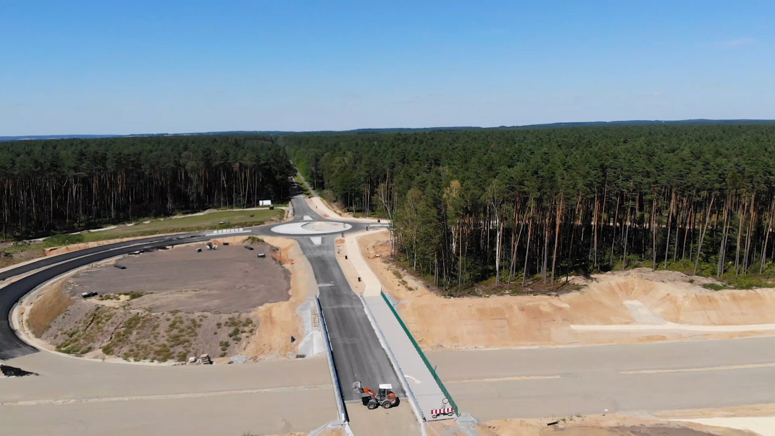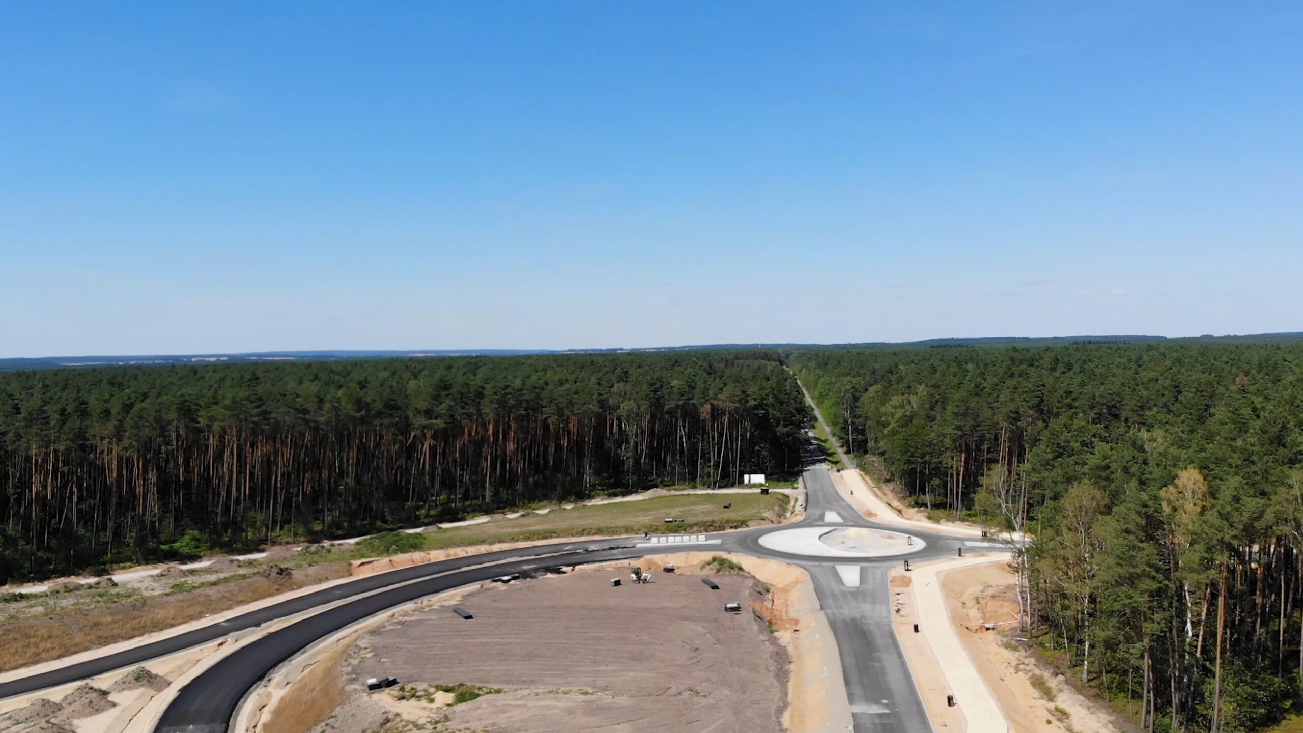 Aktualne zaawansowanie dla tej inwestycji wynosi około 60 proc. Finalizowane są roboty ziemne w zakresie wykopów, nasypów oraz wzmocnienia podłoża w ciągu trasy głównej oraz dróg poprzecznych. Kontynuowane są prace w zakresie układania warstw konstrukcyjnych jezdni. Warstwa podbudowy z kruszywa jest już widoczna na znacznym odcinku trasy głównej.