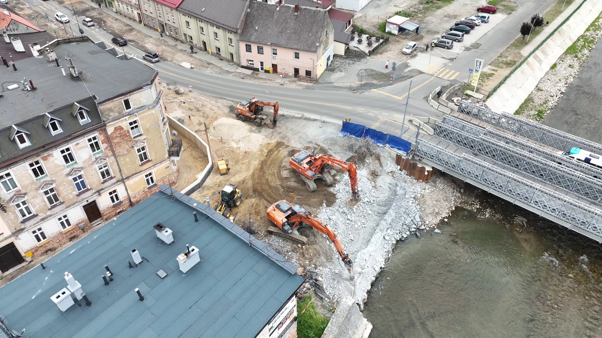 Konsorcjum firm Himmel i Papesch Opole oraz Adac Lewar, dotychczasowy wykonawca rozbudowy DK40 w Głuchołazach, rozpoczęło już prace rozbiórkowe przyczółków oraz fundamentów budowanego wcześniej obiektu, który został zerwany przez powódź we wrześniu ubiegłego roku. Następnie zaplanowano budowę podpór dla nowego obiektu posadowionych poza wałami.
