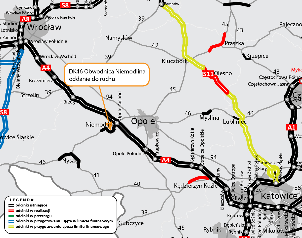 Kierowcy mogą już korzystać z 11,5-kilometrowej obwodnicy Niemodlina w ciągu drogi krajowej nr 46. Zadanie zostało dofinansowane ze środków UE z Programu Operacyjnego Infrastruktura i Środowisko na lata 2014-2020.