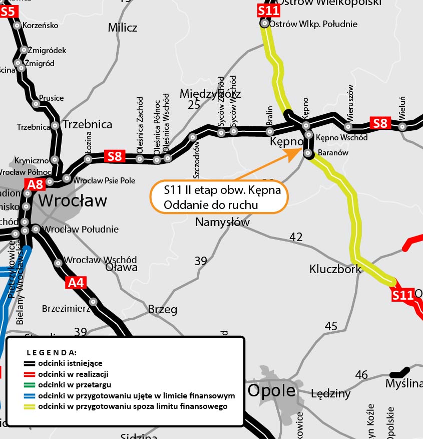 -    To dziesiąty odcinek drogi jaki udostępniamy od początku roku kierowcom. W sumie to blisko 120 km nowych dróg, w większości w ciągu dróg ekspresowych. Oddanie do ruchu II etapu obwodnicy Kępna wyprowadzi tranzyt z centrum miasta i ułatwi dojazd do drogi ekspresowej S8 - podkreśla Tomasz Żuchowski, p.o. Generalnego Dyrektora Dróg Krajowych i Autostrad. - W realizacji mamy kolejne odcinki S11, od Koszalina do Bobolic oraz obwodnicę Olesna. To w sumie ponad 72 km. Trwają przygotowania do realizacji pozostałych odcinków, które połączą Koszalin z Katowicami.
