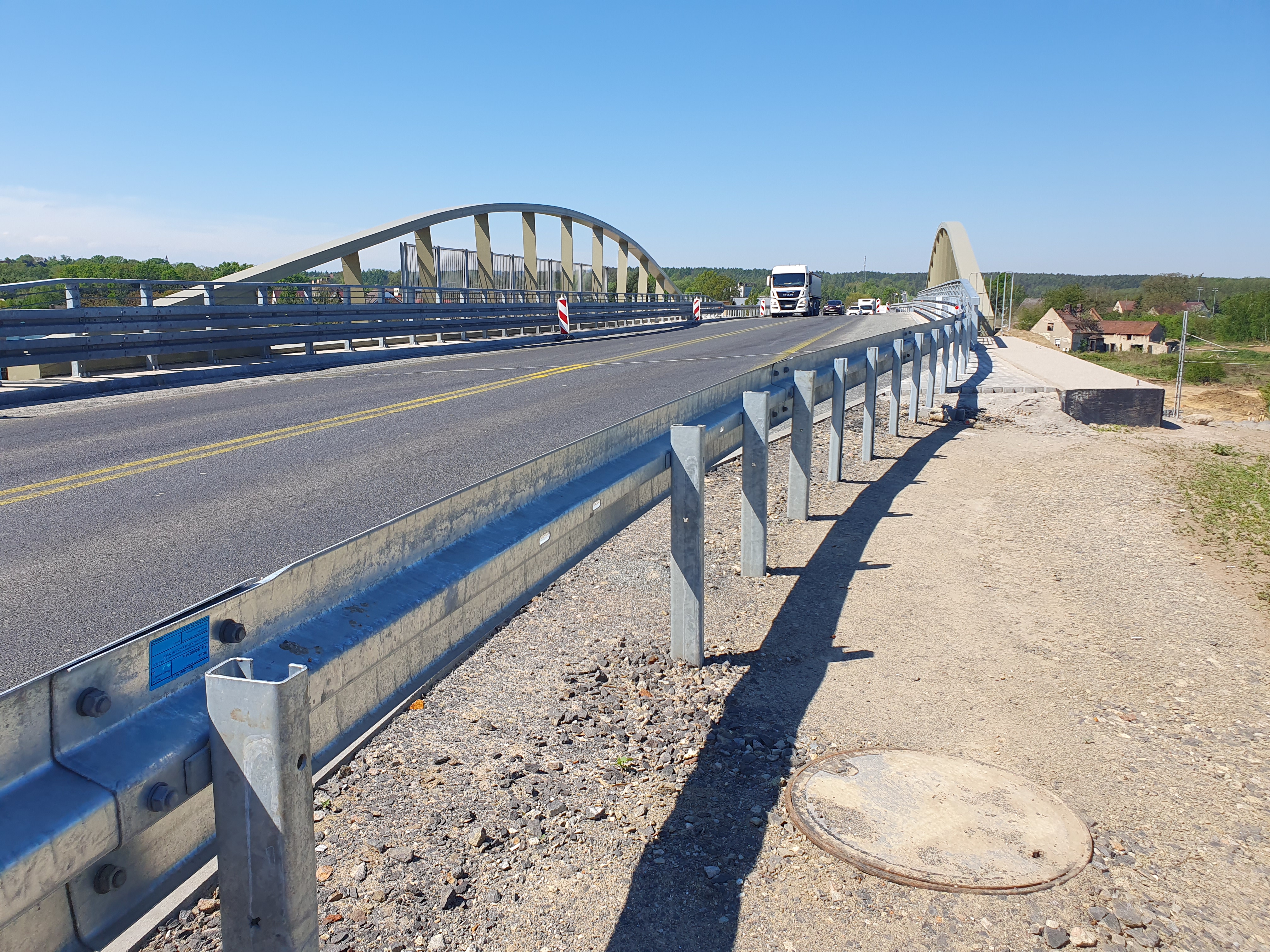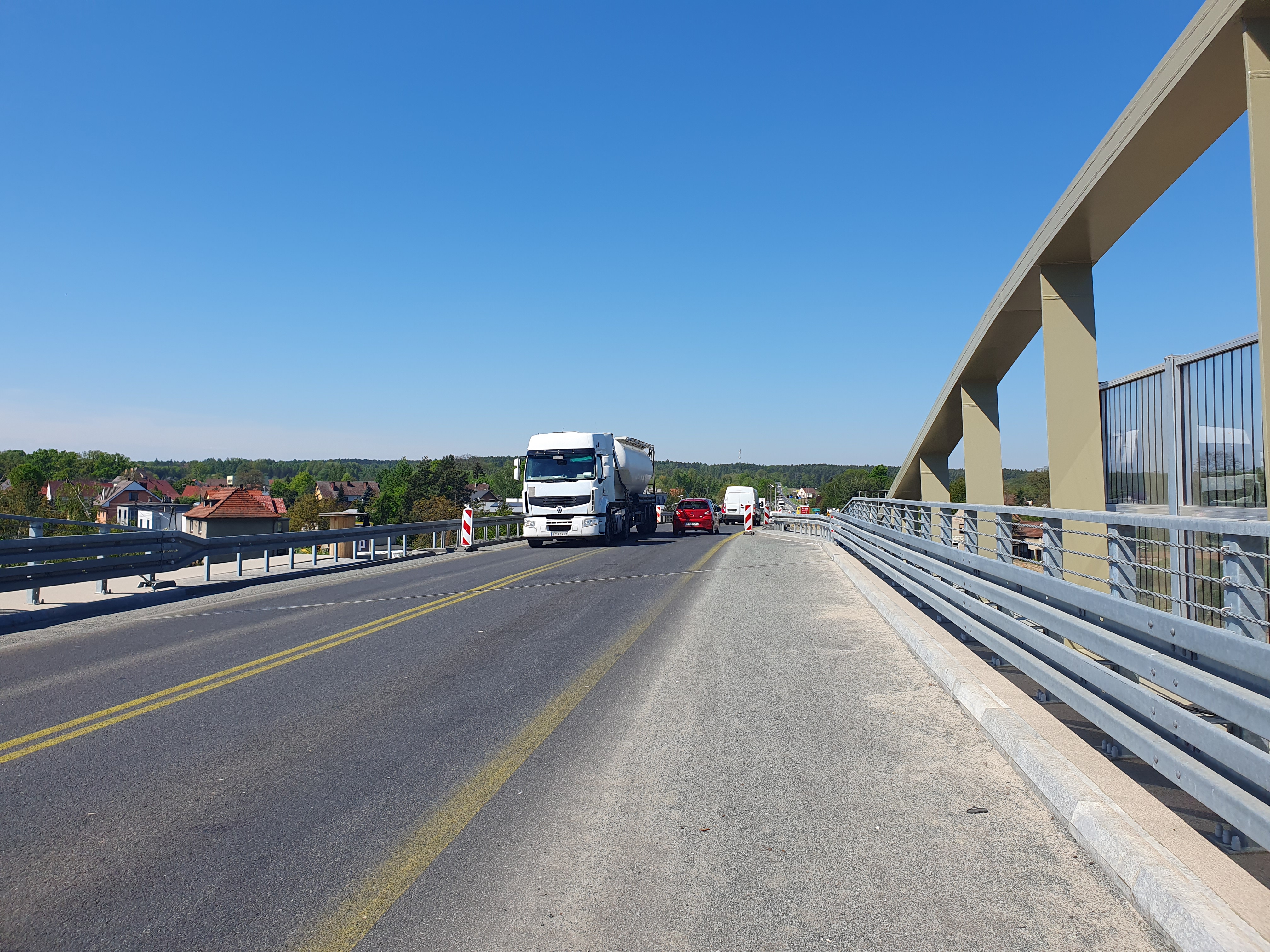 Poza budową nowego wiaduktu - usytuowanego o 1,7 m wyżej w stosunku do obiektu dotychczasowego - oraz przebudową fragmentu DK46 - zakres robót budowlanych obejmował także rozbiórkę poprzedniego wiaduktu. Te prace zrealizowano na przełomie I i II kwartału br.