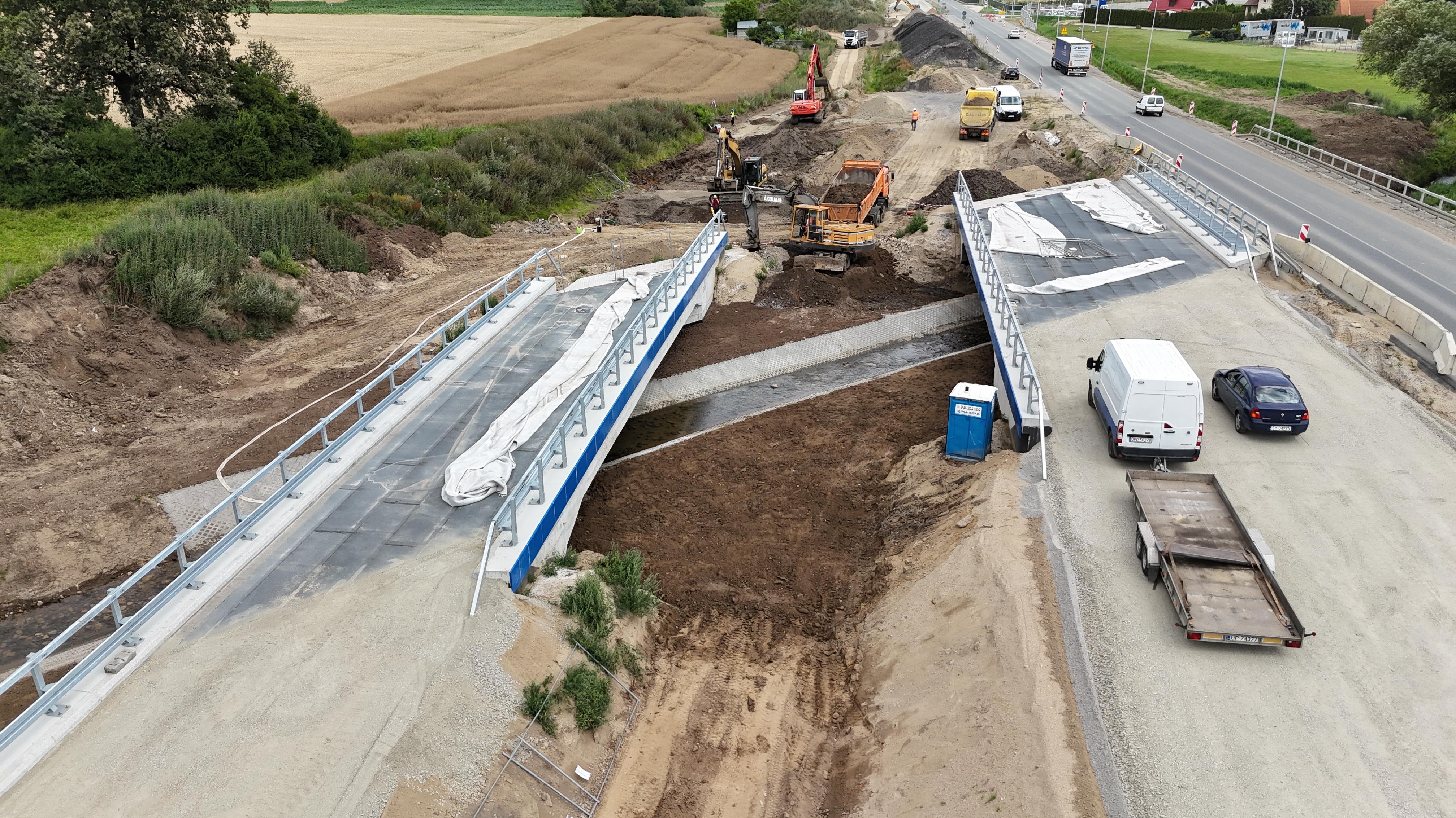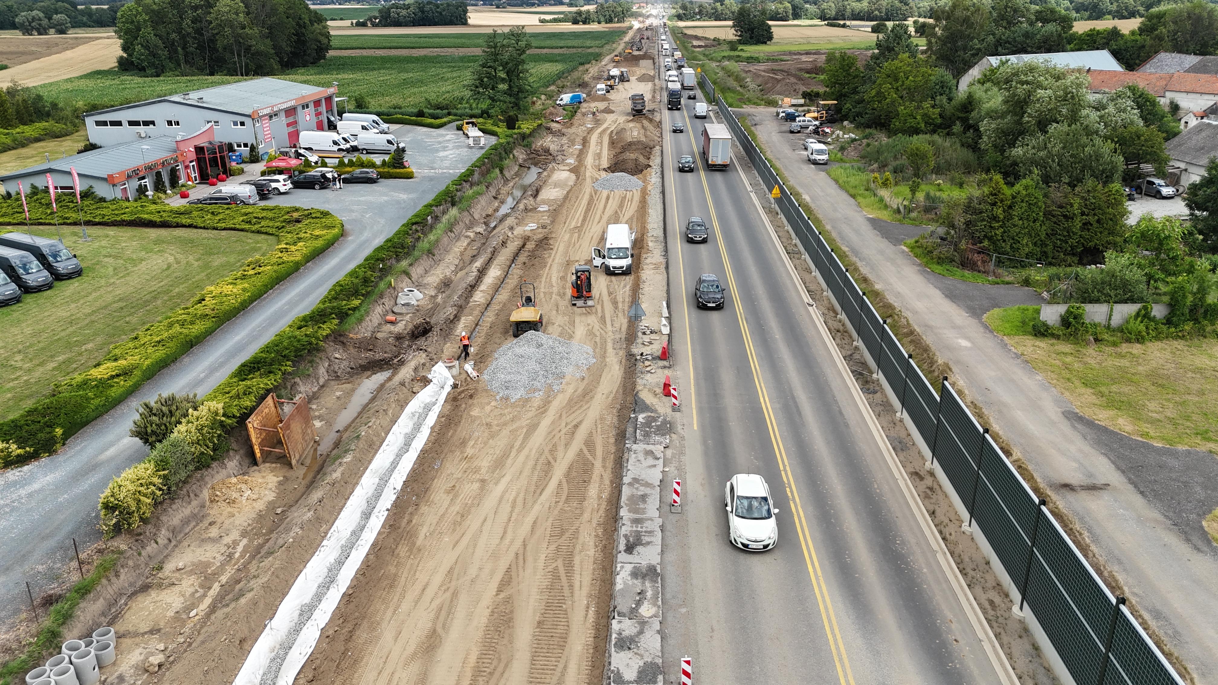 Zaawansowanie rozbudowy ponad 6-kilometrowego odcinka DK46 pomiędzy Nysą i Pakosławicami jest na poziomie około 75 proc. Na zdecydowanej długości jezdni głównych ułożone są już warstwy podbudów bitumicznych. Trwają prace na całej długości jezdni zbiorczych. Sukcesywnie postępują również roboty związane z wyposażeniem obiektów mostowych m.in. w zakresie wykonania drenażu oraz montażu barier. Finalizowane są roboty związane z branżami towarzyszącymi robotom drogowym. Zamontowano już ekrany akustyczne. Kontynuowane są roboty brukarskie oraz prace związane z montażem barier ochronnych. Na sierpień i wrzesień przewidziane są prace związane z układaniem warstwy ścieralnej - ostatniej warstwy bitumicznej. Montowana będzie także sygnalizacja świetlna na skrzyżowaniach. W miejscach zakończenia robót zasadniczych wykonawca układa warstwę humusu i dokonuje zasiewu skarp.