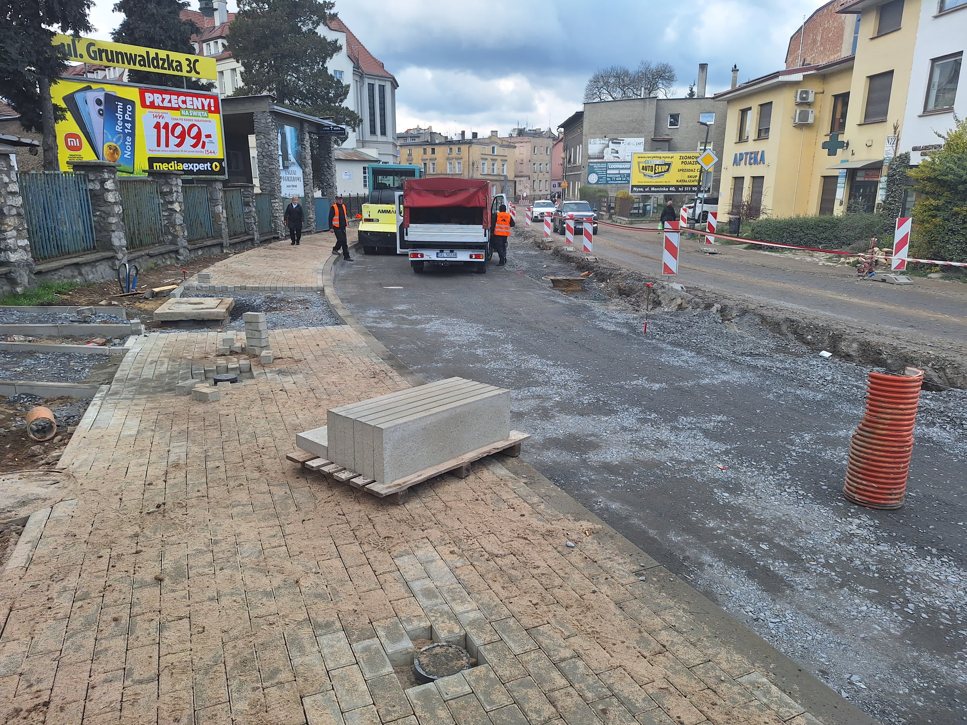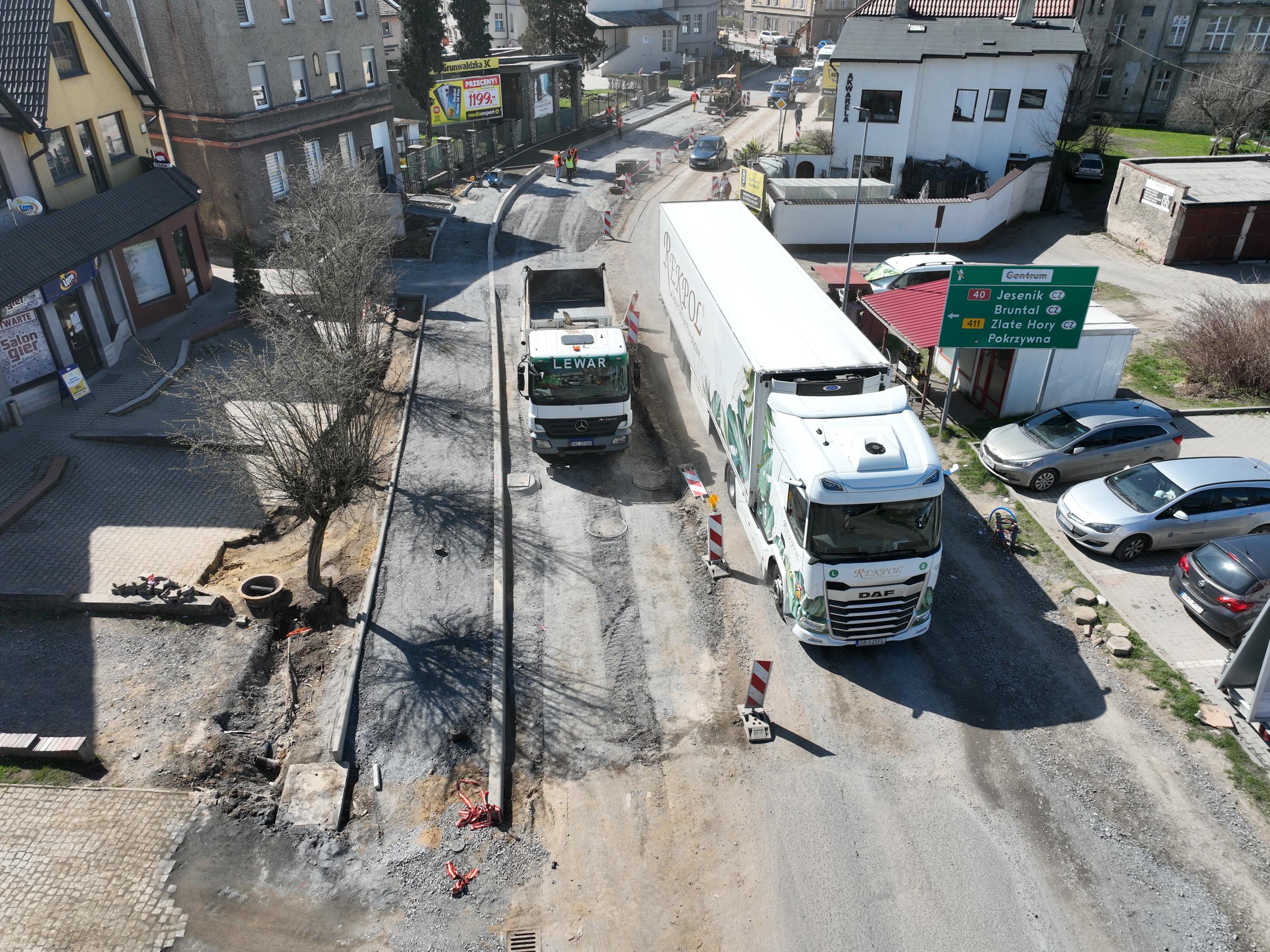 Po zakończeniu robót na pasie ruchu w ciągu DK40 w kierunku Prudnika, ruch samochodowy zostanie na niego przełożony i od połowy kwietnia wykonawca rozpocznie prace branżowe i przyłączeniowe na użytkowanej do tej pory części jezdni w kierunku granicy z Czechami. Po ich zakończeniu wymienione zostaną warstwy konstrukcyjne drogi razem z warstwą wiążącą. Na chodnikach będą prowadzone prace brukarskie obejmujące układanie krawężników i nawierzchni z kostki betonowej.