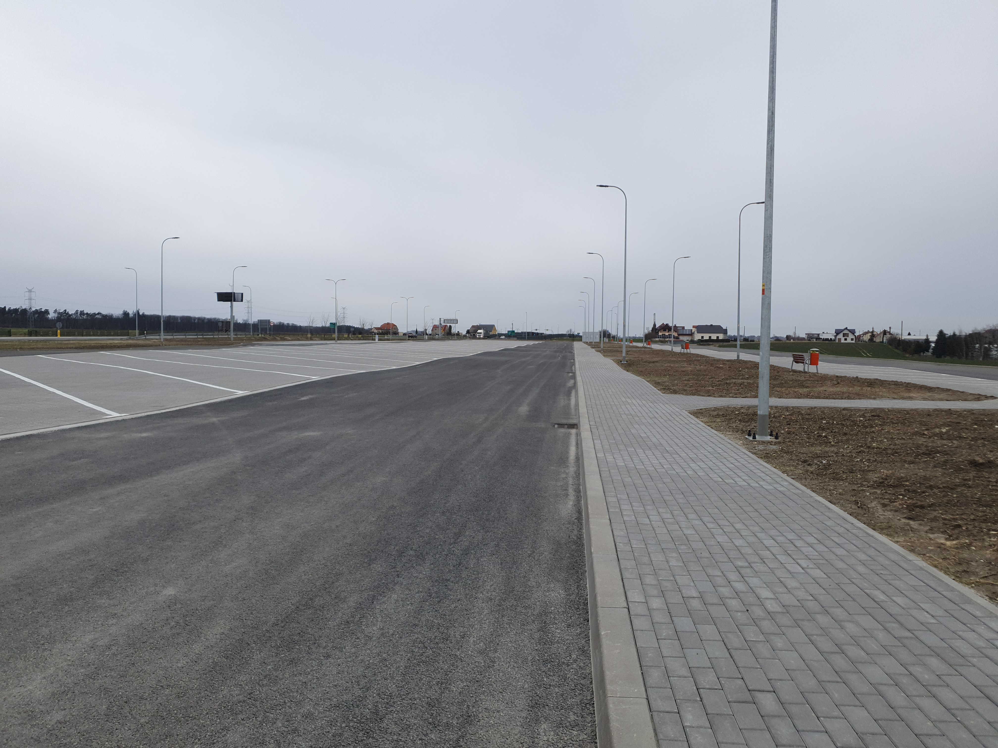 W ramach inwestycji wybudowano również parking drogowy wraz z miejscem do ważenia i kontroli samochodów ciężarowych, na którym kierowcy mają do dyspozycji miejsca postojowe dla samochodów ciężarowych i osobowych (w tym trzy miejsca dla osób niepełnosprawnych). Parking został wyposażony w toaletę modułową dla potrzeb korzystających z parkingu pasażerów (w tym osób niepełnosprawnych). Sprawne odwodnienie parkingu będzie możliwe poprzez zastosowane spadki podłużne do studzienek wpustowych odprowadzających na bieżąco wodę opadową podczas nawalnych deszczy. Umożliwi to szybki spływ wód deszczowych z powierzchni parkingu.