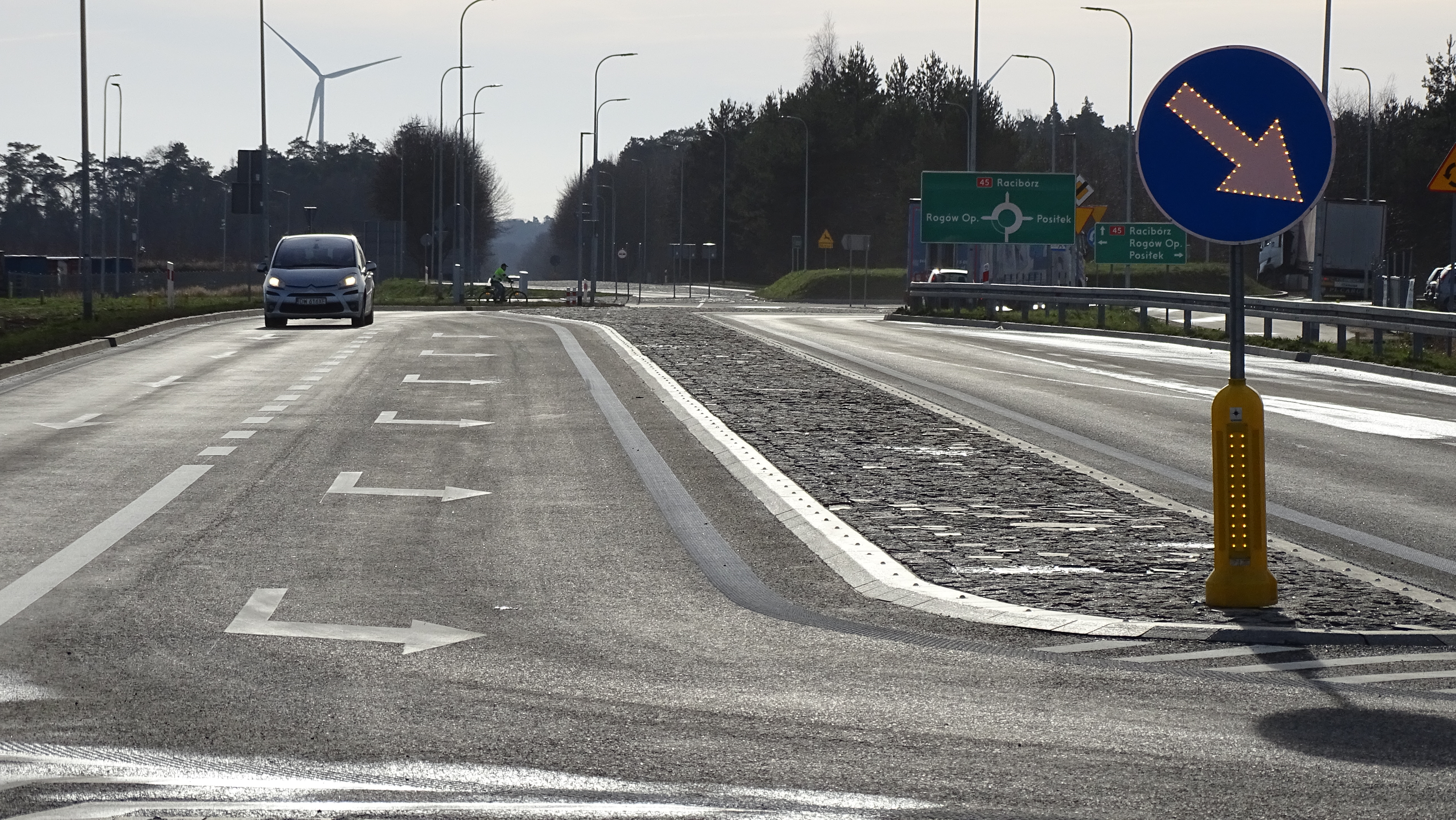 Ponadto wykonano fragmenty równoległych dróg dojazdowych do przyległych terenów. W ciągu trasy głównej oraz na rondach, zamontowano oświetlenie drogowe oraz urządzenia bezpieczeństwa ruchu drogowego (BRD).