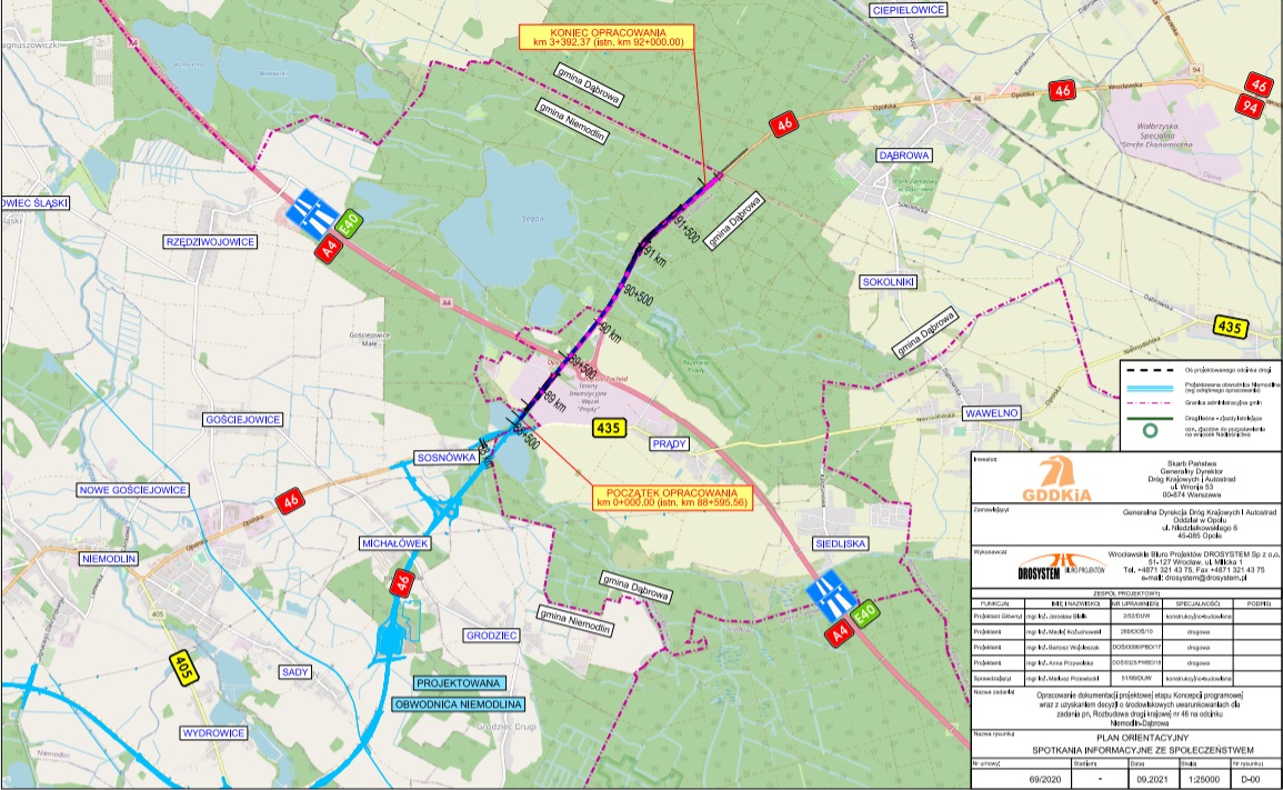 Plan orientacyjny, plany sytuacyjne oraz formularze opinii można pobrać w wersji PDF ze strony internetowej: https://www.dk46-niemodlin-dabrowa.pl