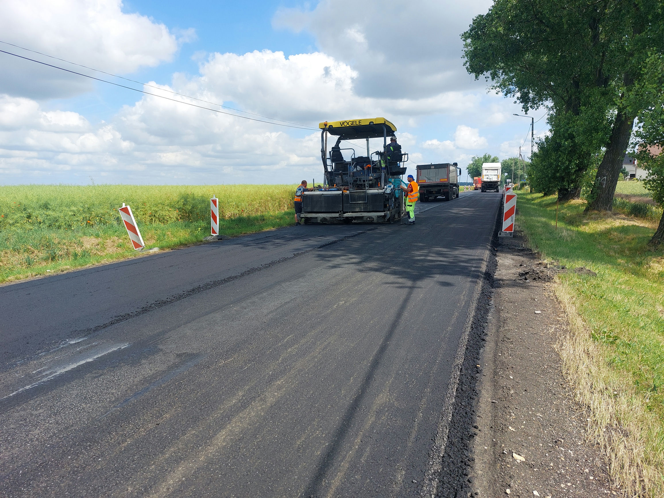 Tutaj wykonawca zakończył układanie warstwy wiążącej oraz ścieralnej i aktualnie wykonywane jest oznakowania poziome.