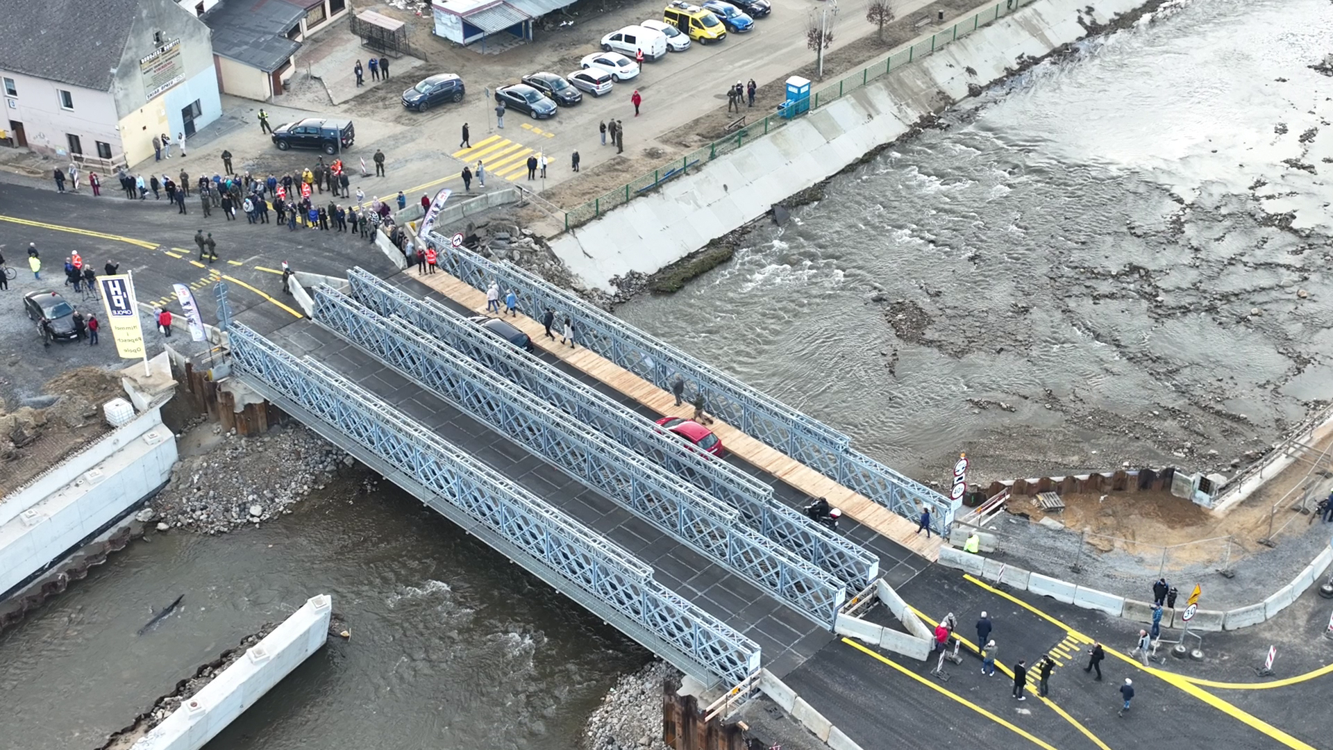 Po przeprowadzeniu próbnych obciążeń i ich pozytywnych wynikach, udostępniliśmy kierowcom i pieszym most tymczasowy w Głuchołazach. 25 października ta wyczekiwana przeprawa została oddana do ruchu.