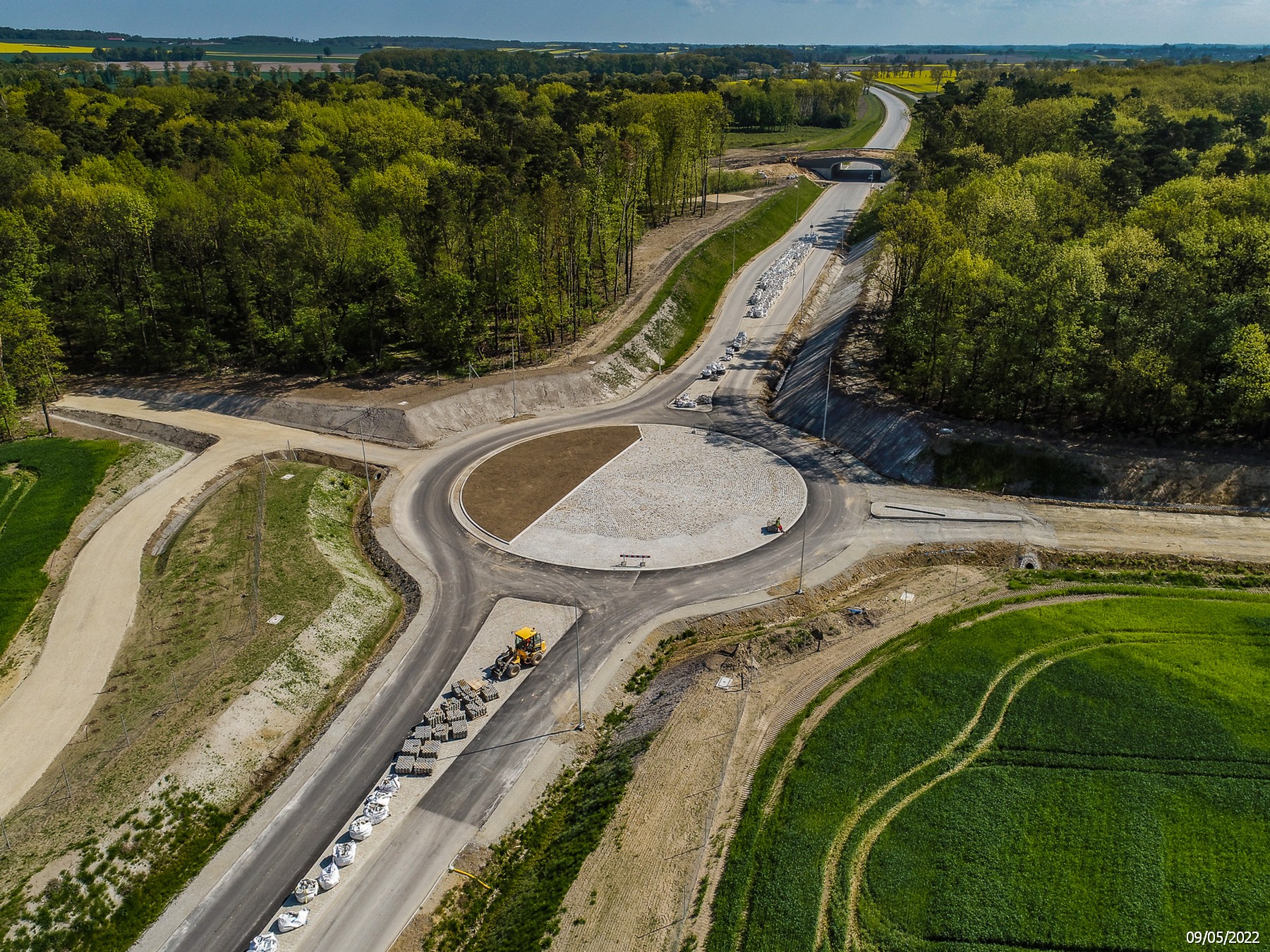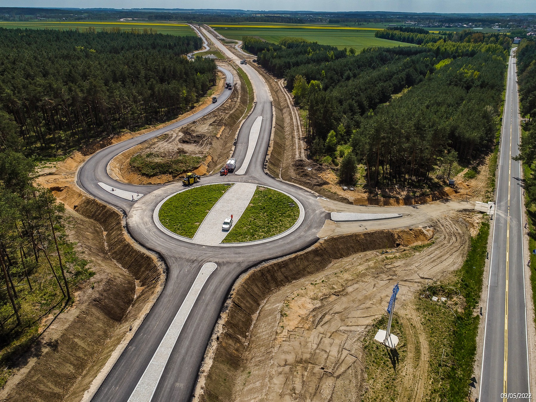 Na trasie głównej położono na prawie całej długości warstwę wiążącą. Prowadzone są również prace przy budowie rond i na dziesięciu obiektach mostowych. Zaawansowanie dla branży mostowej jest na poziomie około 90 proc. Ponadto trwają prace związane z profilowaniem rowów oraz humusowaniem.