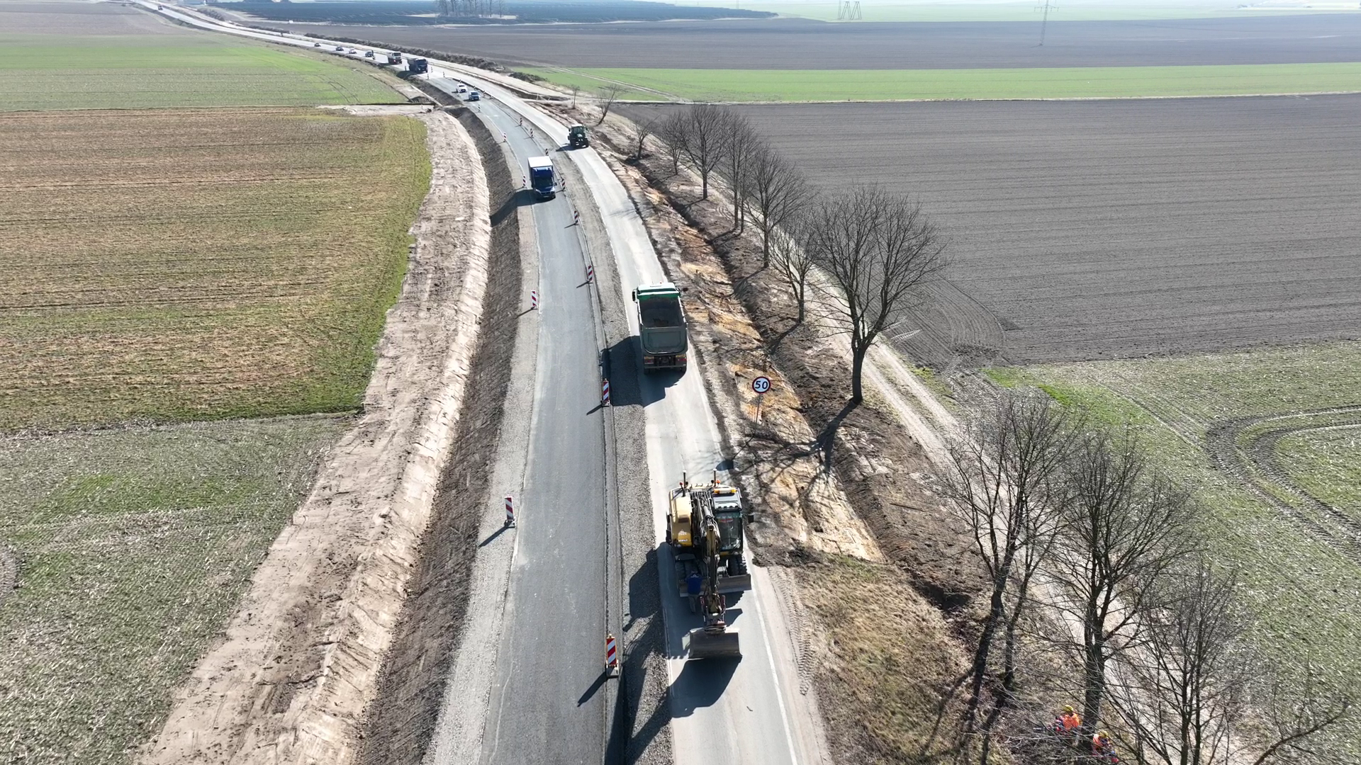 Zakończenie prac na odcinku Krapkowice - Rogów Opolski zaplanowaliśmy na II połowę 2025 r. Zadanie realizuje firma Duna Polska (dawniej Mota-Engil Central Europe) za kwotę blisko 73 mln zł.