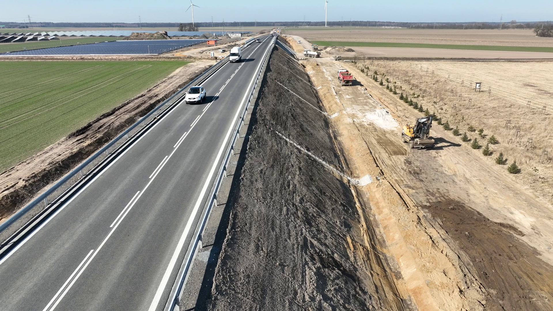 W ramach zadania budujemy chodniki, kanały technologiczne i kanalizację deszczową. Zamontowane zostaną elementy bezpieczeństwa ruchu drogowego (BRD), oraz wykonane oznakowanie pionowe i poziome. Na wysokości Gwoździc wykonaliśmy już ekrany akustyczne.