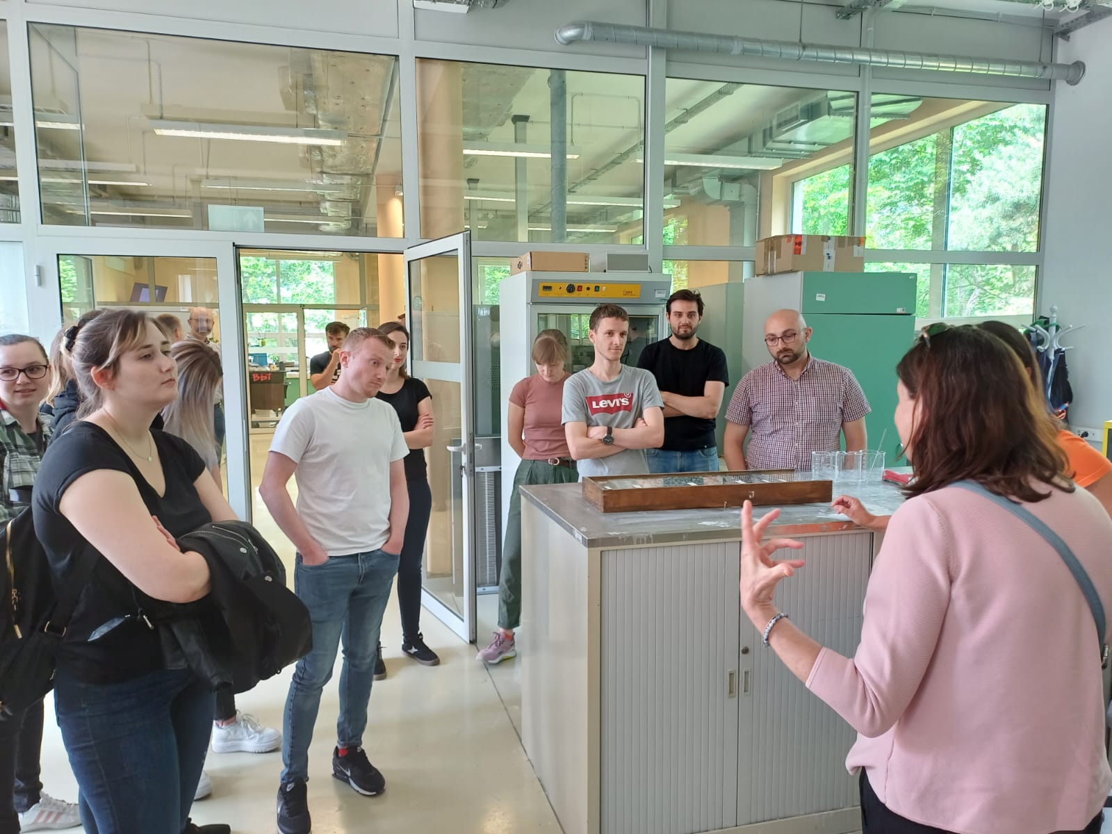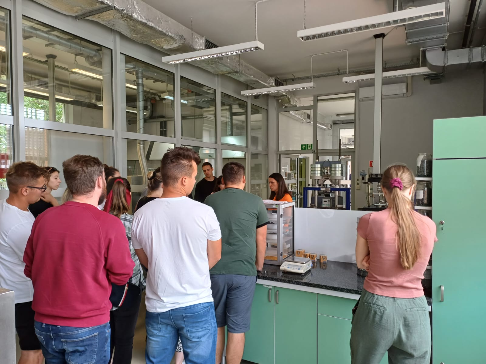 Pracownicy wydziału technologii przybliżyli studentom temat badań laboratoryjnych i tego w jaki sposób są wykonywane na poszczególnych etapach budowy drogi. Omówiono i przedstawiono badania z zakresu gruntów, betonów, kruszyw, asfaltów i mieszanek mineralno-asfaltowych oraz diagnostyki nawierzchni. Studenci mogli także zapoznać się z metodami pobierania próbek dla wszystkich asortymentów.