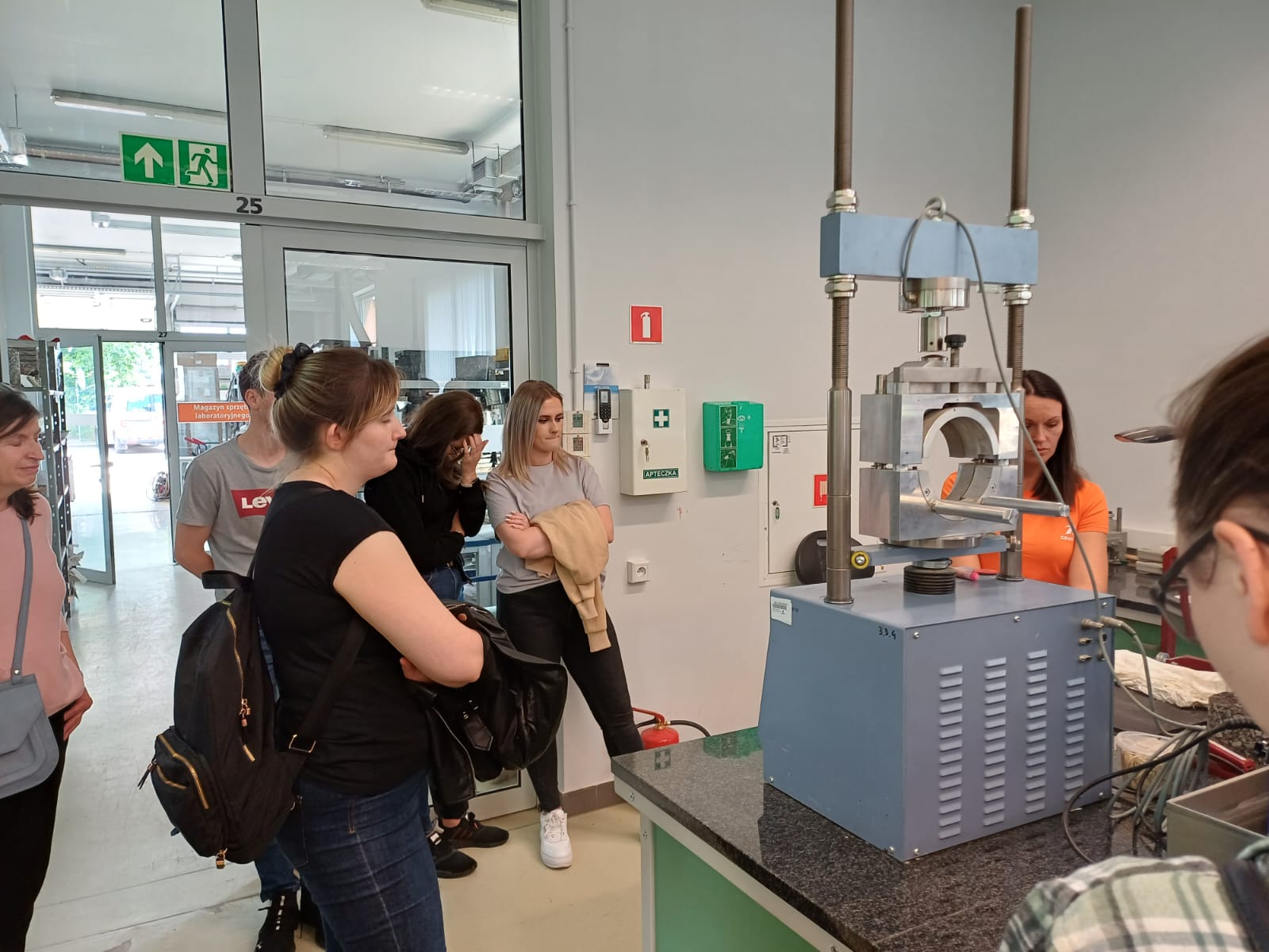 Studenci Wydziału Budownictwa i Architektury specjalności budownictwo drogowe Politechniki Opolskiej wraz ze swoimi wykładowcami odwiedzili nasze laboratorium drogowe. Podczas wizyty mieli możliwość obserwować przebieg prowadzonych badań nawierzchni, poszczególnych warstw konstrukcji jezdni i innych elementów infrastruktury drogowej.