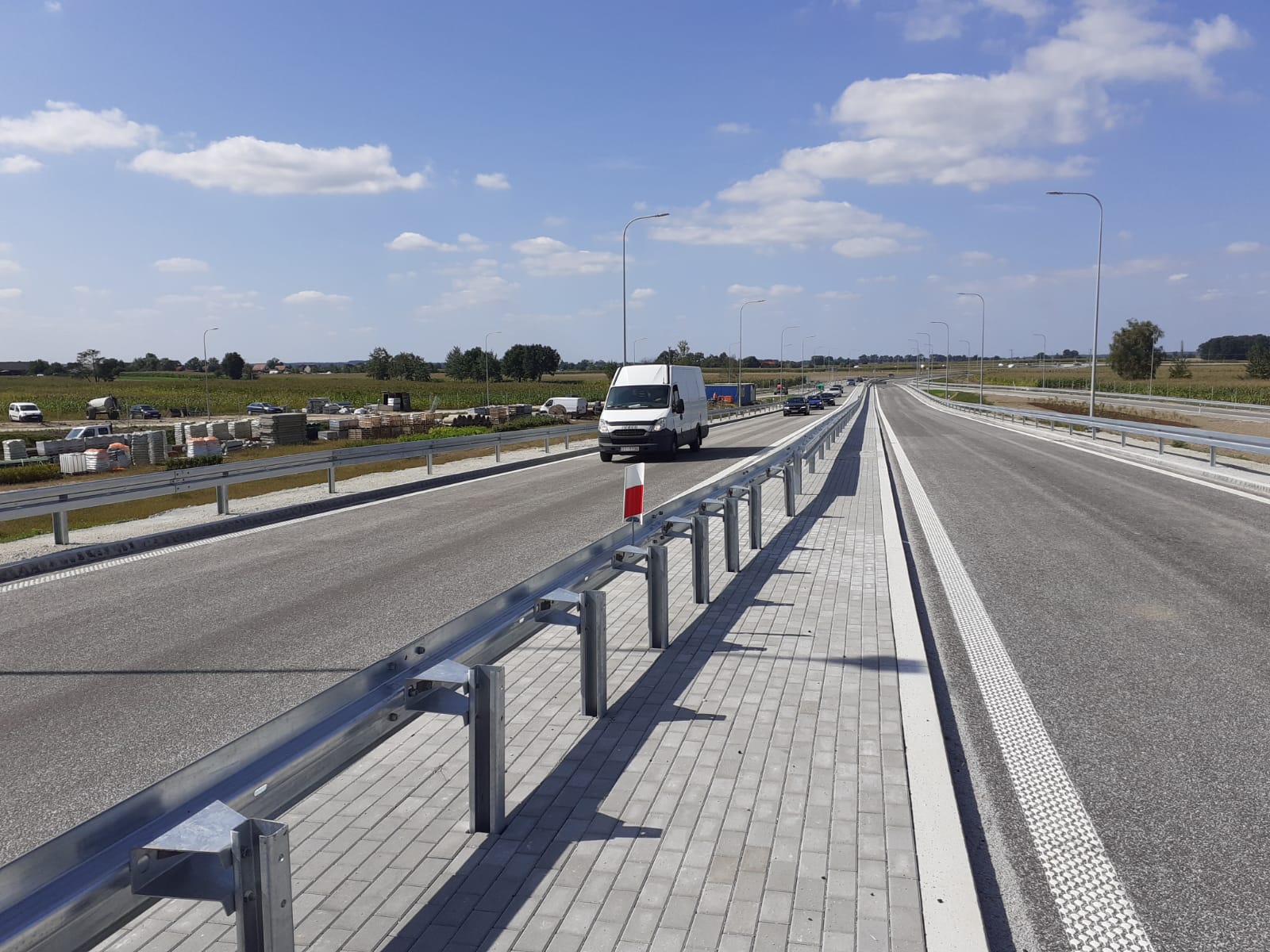 Wykonawca prowadzi także prace związane z elementami docelowej organizacji ruchu – trwa montaż barier ochronnych, oznakowania pionowego, wykonywane jest oznakowanie poziome grubowarstwowe. Trwa montaż ekranów akustycznych.