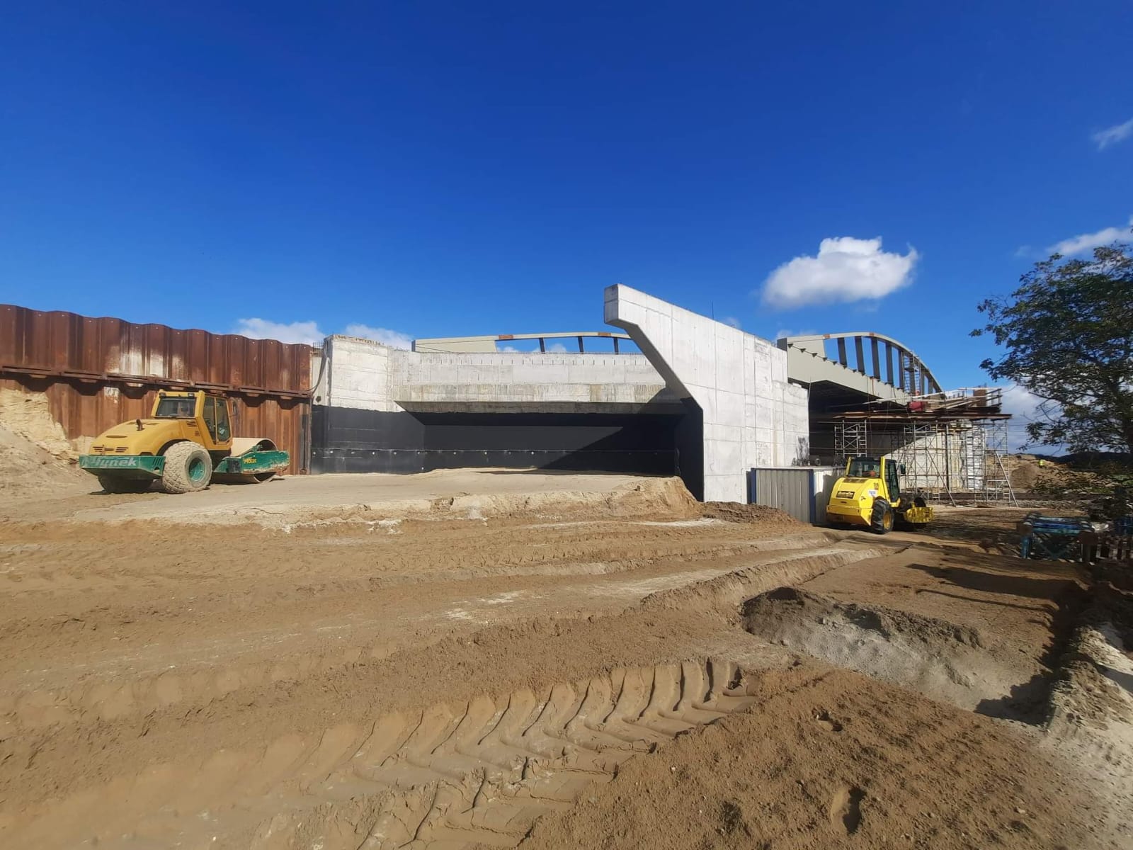 W zakresie prowadzonych prac wykonawca zakończył budowę fundamentów, przyczółków oraz ustroju nośnego. Zakończono także prace związane z montażem konstrukcji stalowej wiaduktu. Zaplanowano kontynuację robót związanych z budową nasypu oraz płyty pomostu. Przed nami także prace na obiekcie m.in. w zakresie wykonania izolacji, nawierzchni oraz barier ochronnych. Budowany obiekt będzie usytuowany wysokościowo o 1,7 m wyżej w stosunku do obiektu istniejącego - wynika to z aktualnych warunków technicznych przekroczeń linii PKP z trakcją elektryczną