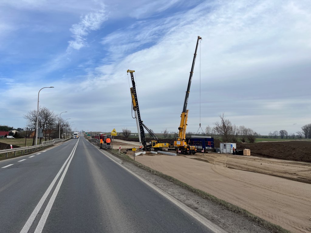 Aktualne zaawansowanie dla tej inwestycji wynosi ponad 80 proc. Roboty ziemne w zakresie wykopów, nasypów oraz wzmocnienia podłoża w ciągu trasy głównej oraz dróg poprzecznych zostały zakończone. Wykonawca prowadzi prace przy humusowaniu terenów płaskich oraz skarp i rowów na całej długości obwodnicy. Kontynuowane są prace związane z montażem barier ochronnych w ciągu trasy głównej. Warstwa podbudowy bitumicznej jest już widoczna na znacznym odcinku trasy głównej, a od połowy marca zaplanowano prace przy układaniu jej kolejnych odcinków. Na poszczególnych odcinkach drogi będzie już również układana ostatnia warstwa z pakietu warstw bitumicznych, czyli warstwa ścieralna. Tam, gdzie jest taka możliwość, ruch jest już kierowany na wykonane obiekty mostowe. Dla tego zadania oddano już sześć obiektów. Na pozostałych prowadzone są prace wykończeniowe.