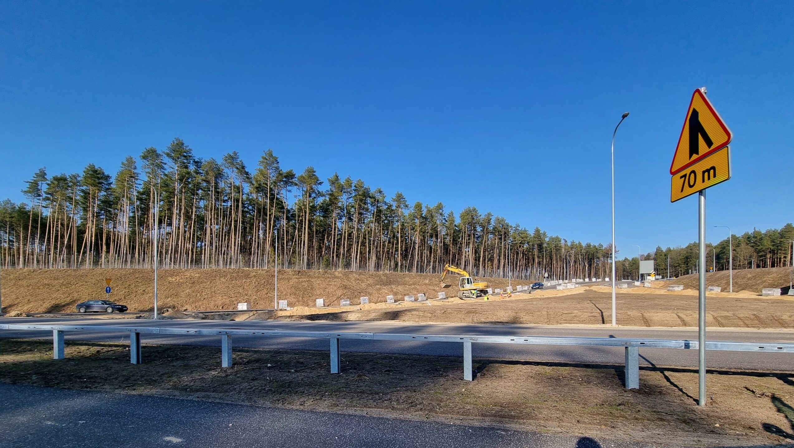 W zakresie prowadzonych robót drogowych wykonawca realizuje prace związane z odhumusowaniem oraz wykonywaniem nasypów. W zakresie robót branżowych wykonawca prowadzi prace związane z przebudową instalacji wodociągowej, teletechnicznej, gazowej oraz budową kanału technicznego na całej długości przebudowanego odcinka. Rozpoczęły się prace związane z lokalnym wzmocnieniem podłoża gruntowego.
