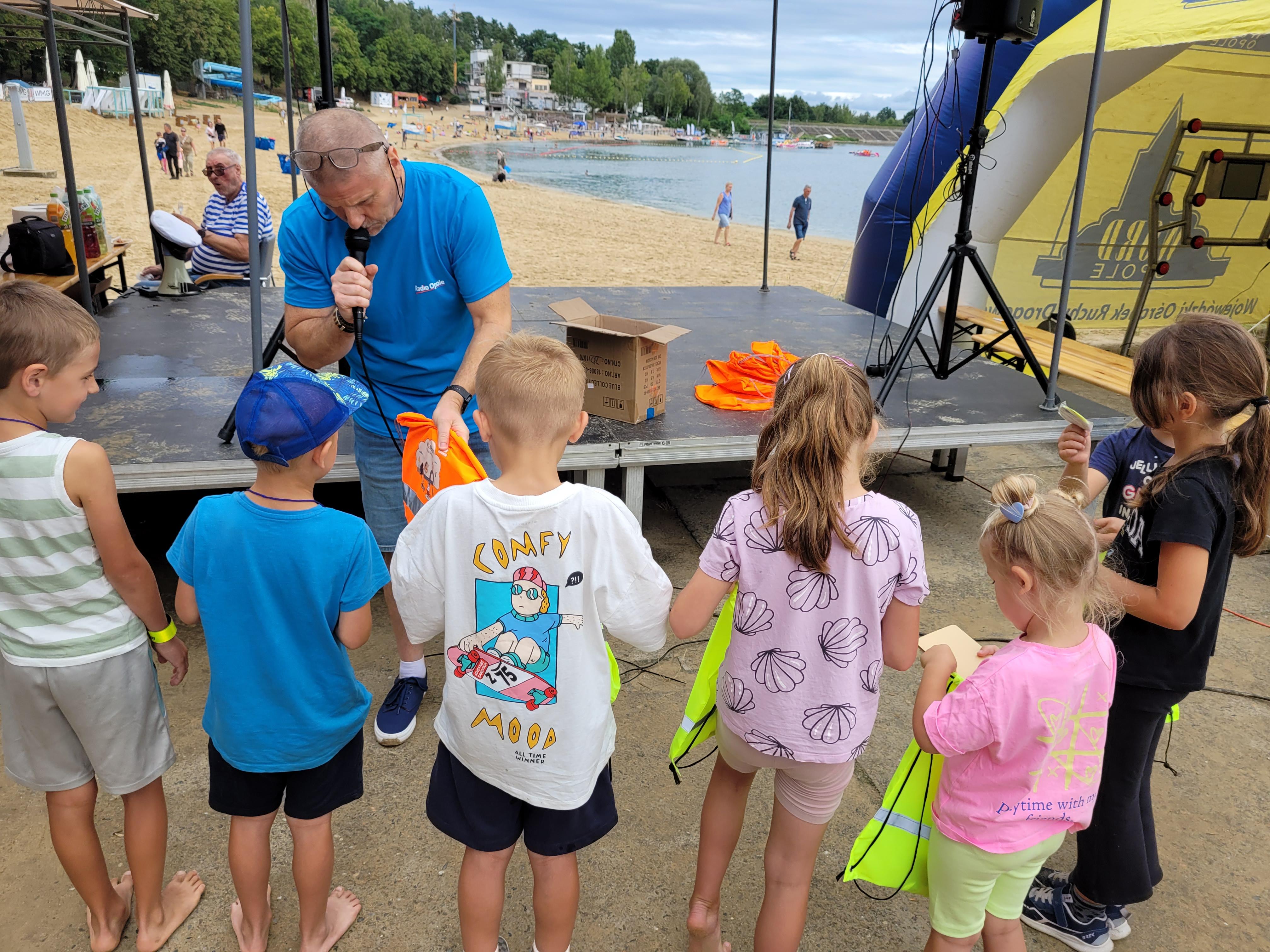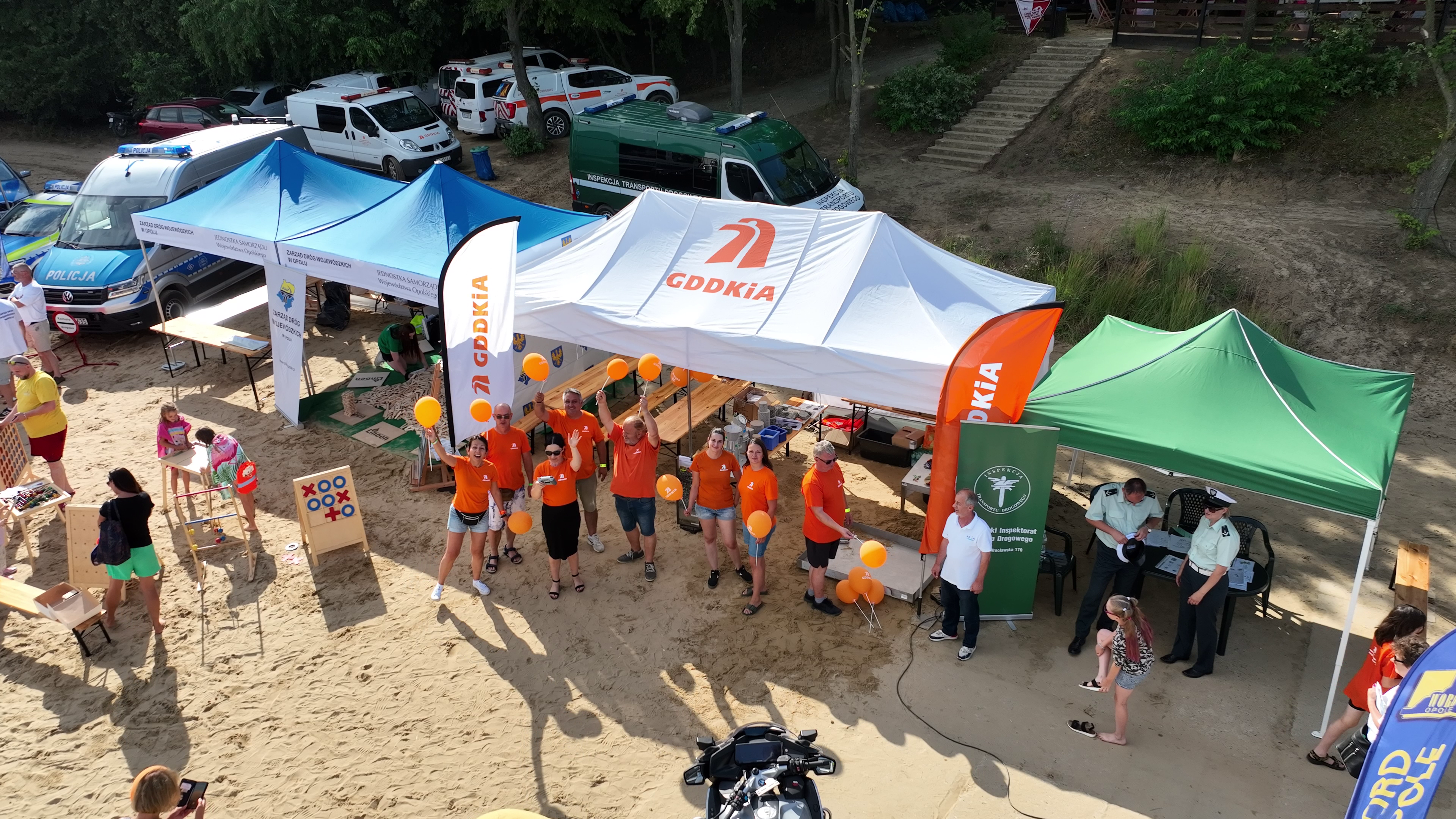 Fragment plaży Ośrodka Akwa Marina nad Jeziorem Nyskim w Skorochowie na kilka godzin zamienił się w strefę, w której głównym tematem były zasady bezpieczeństwa, także w ruchu drogowym. Były konkursy, quizy i rozmowy o bezpieczeństwie. Nie zabrakło pokazów sprzętu służb i instytucji biorących na co dzień udział w akcjach ratowniczych również na drogach krajowych.
