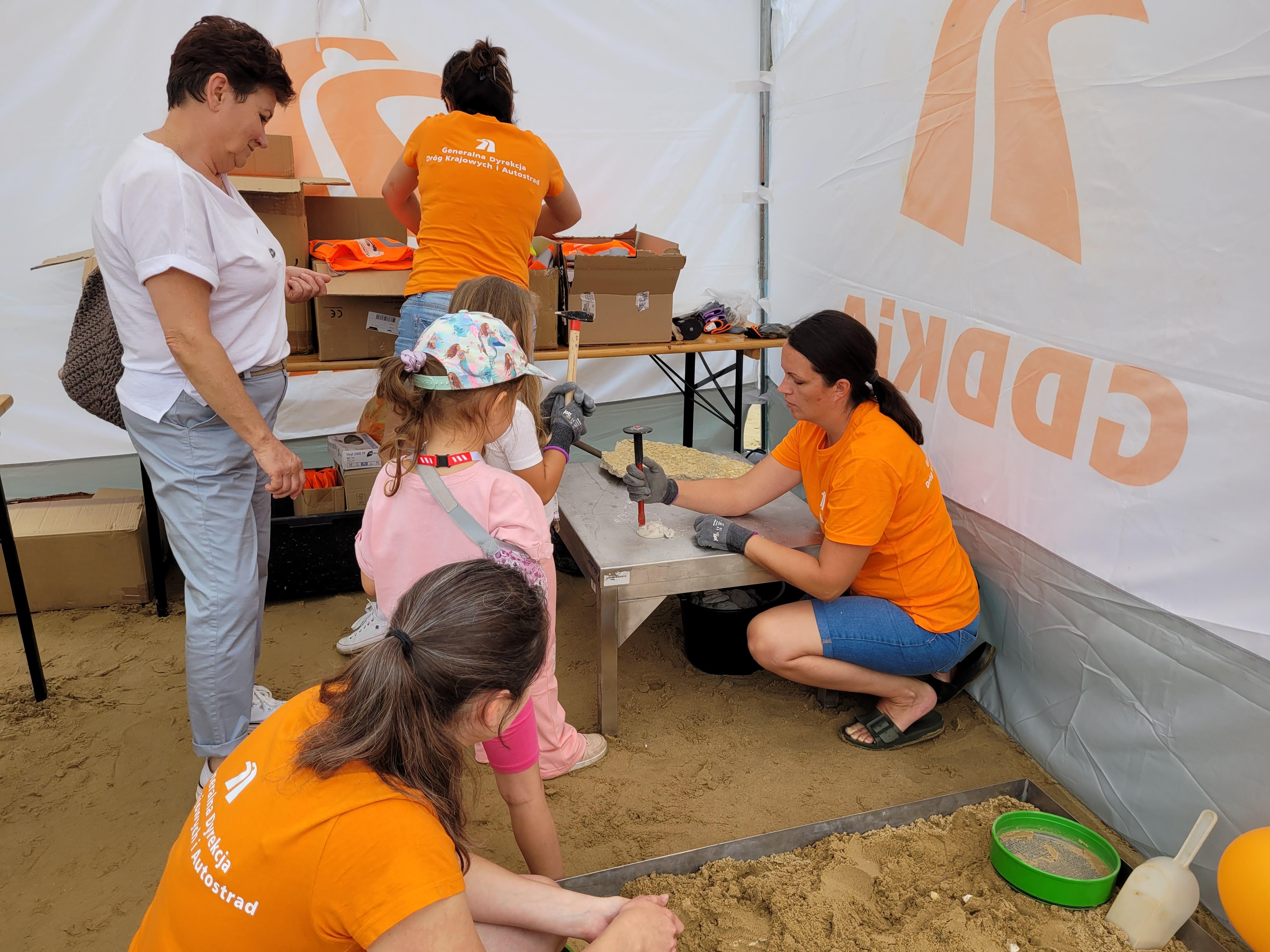 Nad Jezioro Nyskie w Skorochowie przyjechało także mobilne laboratorium GDDKiA z szeregiem atrakcji dla najmłodszych i tych nieco starszych. W ramach prowadzonych warsztatów dzieci mogły pomalować gipsowe skamieniałości, poszukać dinozaurów w piasku oraz formach z gipsu, zbudować swój własny przekrój drogi. Dorośli z kolei mogli spróbować sił, używając sondy dynamicznej. Można było się zapoznać z urządzeniem do kwartowania soli oraz zobaczyć, jak wygląda zagęszczanie próbek betonu.