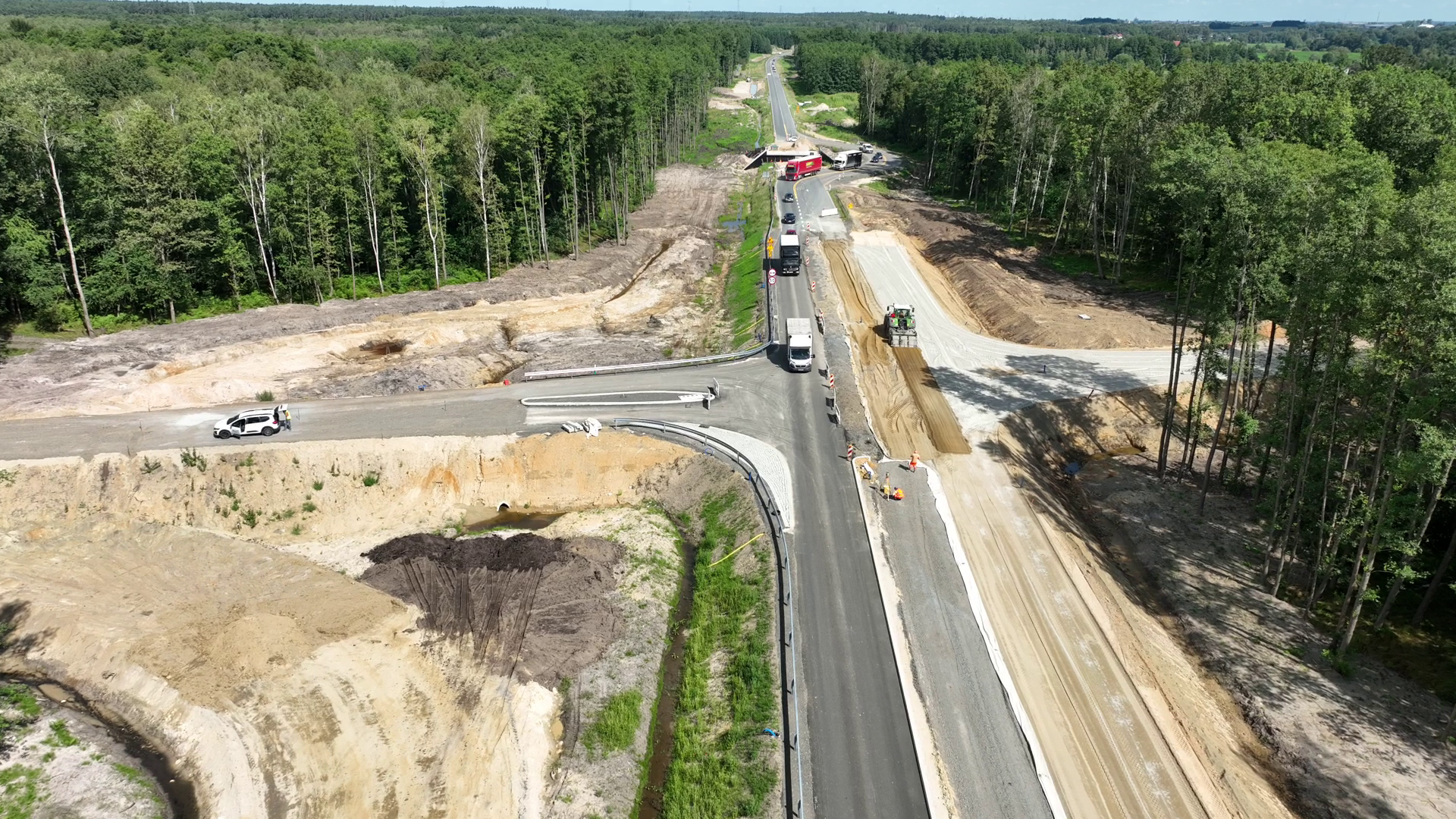 Na pozostałych fragmentach rozbudowywanego odcinka układane są warstwy konstrukcji jezdni. Dolne warstwy są stabilizowane, następnie zostają przykryte podbudową z kruszywa. Jednocześnie trwają prace związane z budową wiaduktu nad linią kolejową, gdzie wykonawca rozpoczął już zbrojenie oraz betonowanie przyczółków.