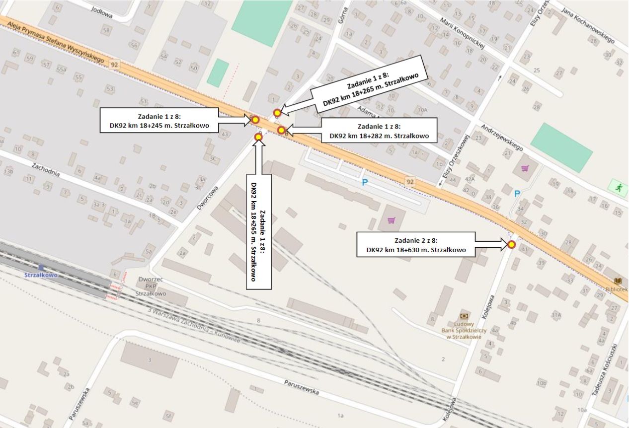 Podpisaliśmy umowę na zaprojektowanie i budowę osiemnastu doświetleń przejść dla pieszych na DK92 w Strzałkowie z firmą Elektrobud M. Czerniak Spółka komandytowa. Wykonawca na realizację zadania ma 114 dni od dnia podpisania umowy. Umowa opiewa na kwotę 1 068 870,00 zł brutto.