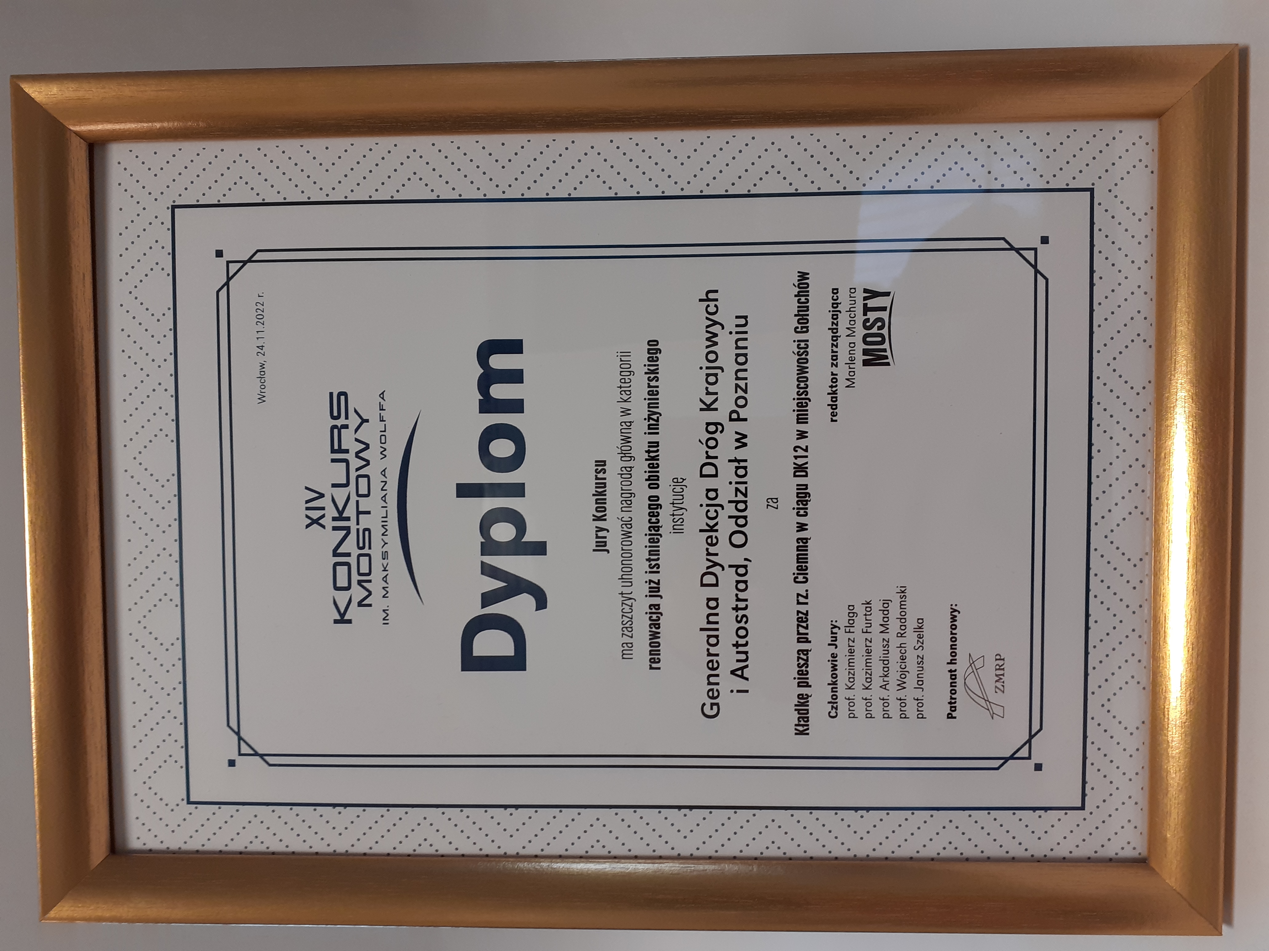 Redakcja czasopisma „Mosty” podczas Wrocławskich Dni Mostowych ogłosiła wyniki 14. edycji Konkursu Mostowego im. Maksymiliana Wolffa. Wśród nagrodzonych jest jedna z wielkopolskich realizacji GDDKiA.