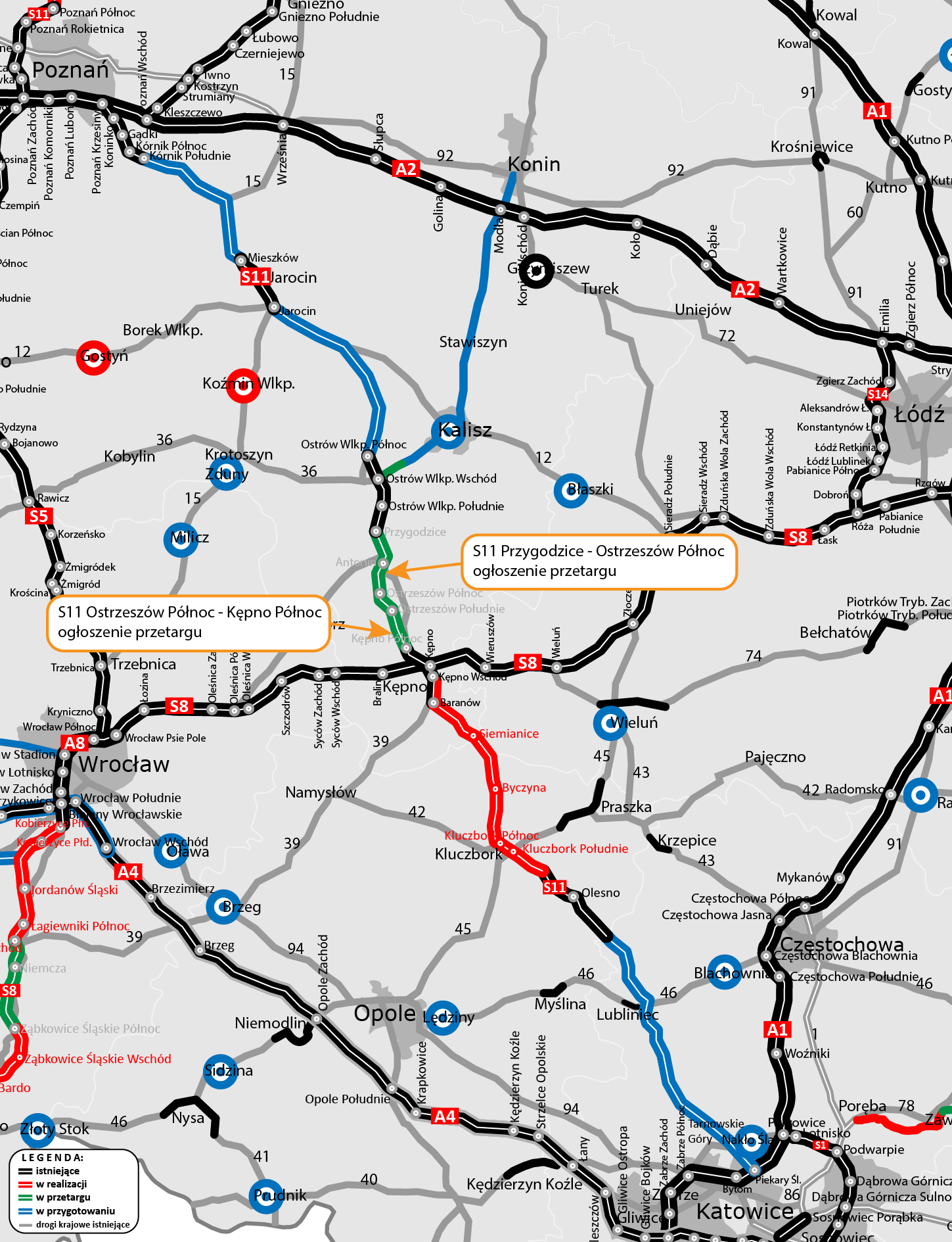 Do publikacji w Dzienniku Urzędowym UE wysłaliśmy ogłoszenia o przetargach na zaprojektowanie i budowę około 30 kilometrów drogi ekspresowej S11 Ostrów Wielkopolski – Kępno. Składają się na to dwa odcinki, które zrealizujemy w latach 2025-2029 w ramach Rządowego Programu Budowy Dróg Krajowych do 2030 r. (z perspektywą do 2033 r.).