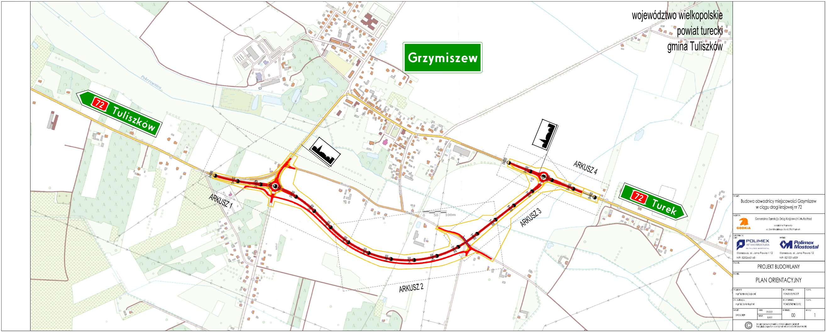 28 czerwca 2021 r. podpisaliśmy umowę na zaprojektowanie i budowę około 1,5-kilometrowej obwodnicy Grzymiszewa w ciągu DK72. Wykonawcą inwestycji jest konsorcjum firm Polimex Infrastruktura (lider) i Polimex Mostostal (partner). Umowa o wartości ponad 18 mln zł zostanie zrealizowana w ciągu 27 miesięcy od daty jej zawarcia z wyłączeniem okresów zimowych w czasie robót budowlanych. W ramach umowy wykonawca przygotuje projekt budowlany, uzyska niezbędne decyzje, a następnie wybuduje drogę. Planowany termin oddania do ruchu to II kwartał 2024 r.