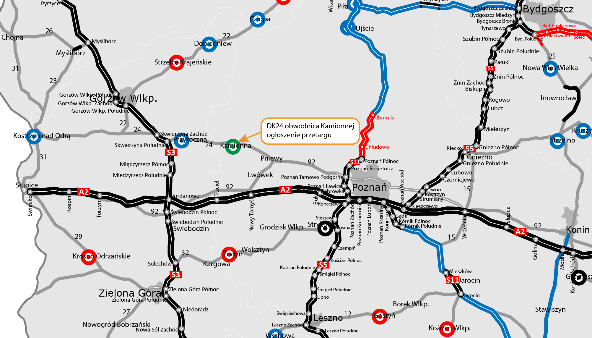Od wyłonionego w przetargu wykonawcy oczekujemy realizacji inwestycji w formule Projektuj i buduj, czyli zaprojektowania, uzyskania wszystkich niezbędnych decyzji administracyjnych i budowy drogi klasy GP (głównej ruchu przyspieszonego) o długości około 3,5 km. W ciągu 10 miesięcy od podpisania umowy ma zostać opracowany projekt budowlany i złożony wniosek o wydanie decyzji o zezwoleniu na realizację inwestycji drogowej (ZRID). Po jej uzyskaniu rozpoczną się prace w terenie. Inwestycja zostanie ukończona w ciągu 36 miesięcy (z czasu realizacji robót wyłączone będą okresy zimowe od 16 grudnia do 15 marca), a kierowcy z nowej trasy skorzystają w IV kwartale 2028 r.