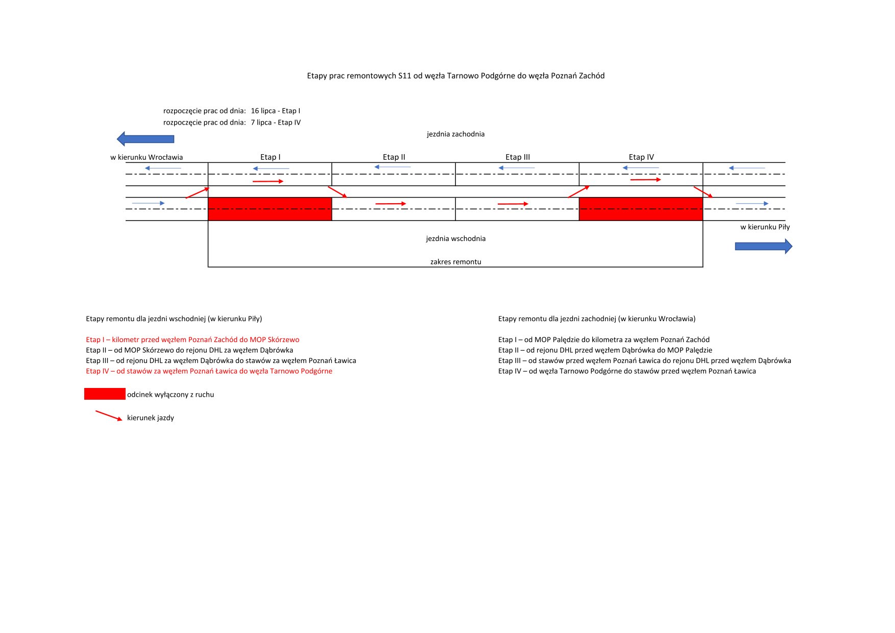 Nie będzie możliwości zjazdu z S5 z kierunku Wrocławia na węzeł Poznań Zachód w kierunku Warszawy. Niemożliwy będzie też wjazd z A2 z kierunku Warszawy na węzeł Poznań Zachód w kierunku S11 i Piły.