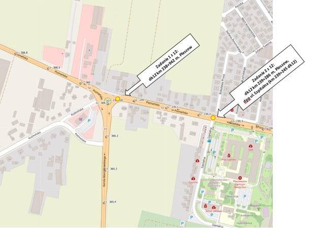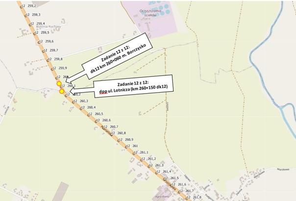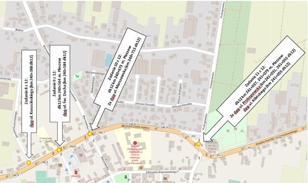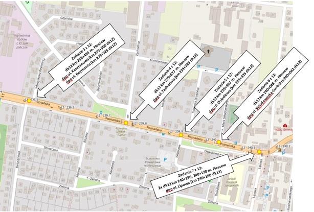 Zadanie polega na zaprojektowaniu i budowie dwudziestu sześciu doświetleń przejść dla pieszych na drodze krajowej nr 12.