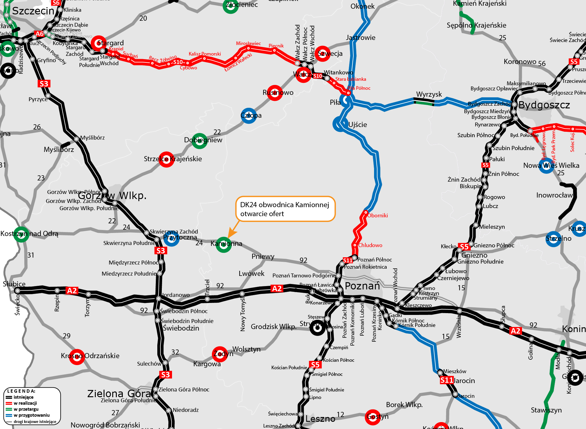 Zadanie polega na zaprojektowaniu i budowie obwodnicy Kamionnej w ciągu drogi krajowej nr 24. Trasa powstanie w ramach rządowego Programu budowy 100 obwodnic na lata 2020-2030 (PB100).