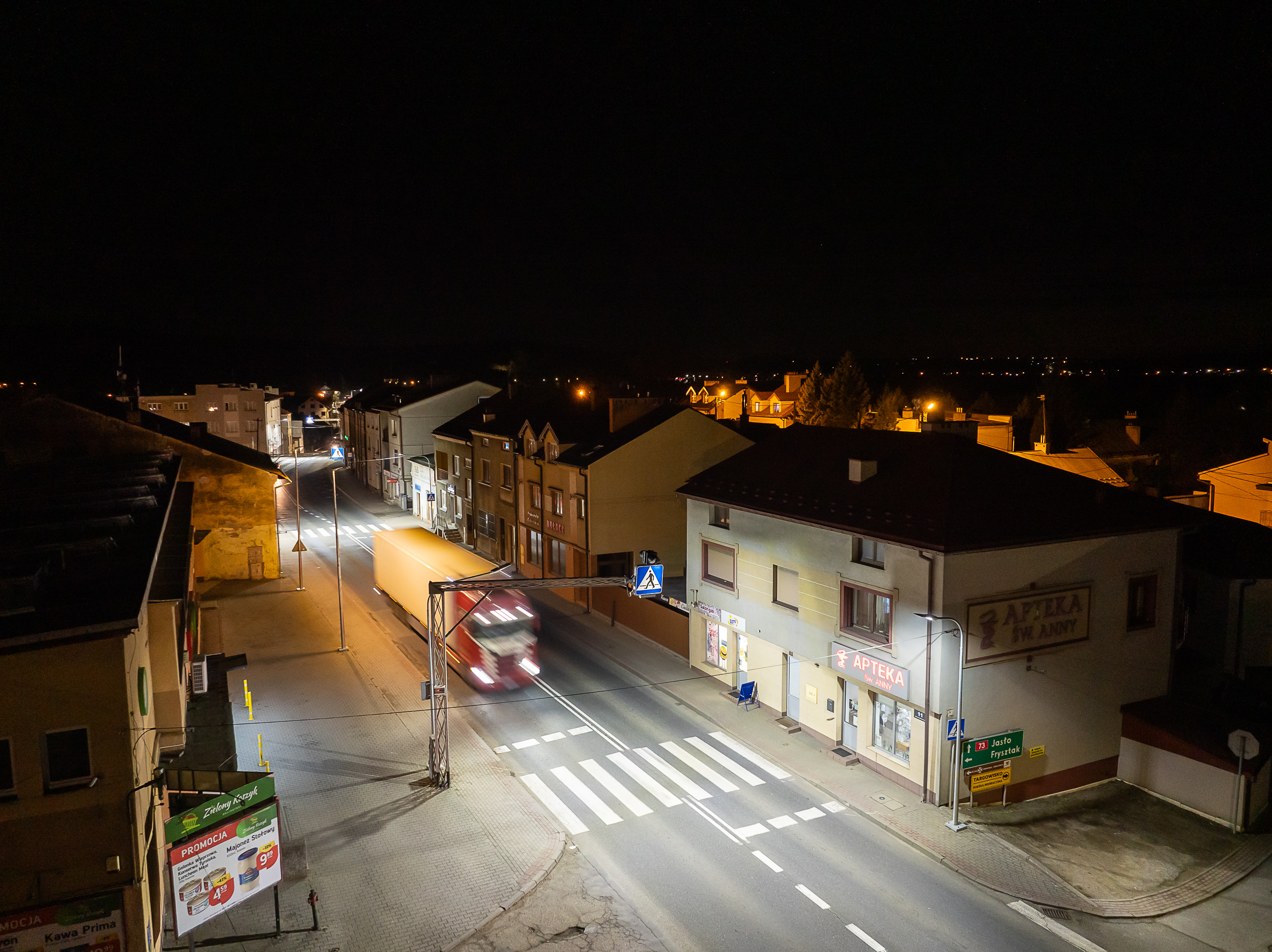 Dotyczy to oświetlenia części dróg krajowych (innych niż autostrady i drogi ekspresowe) znajdujących się na terenie gminy, wymagających odrębnego oświetlenia i przeznaczonych do ruchu pieszych lub rowerów.