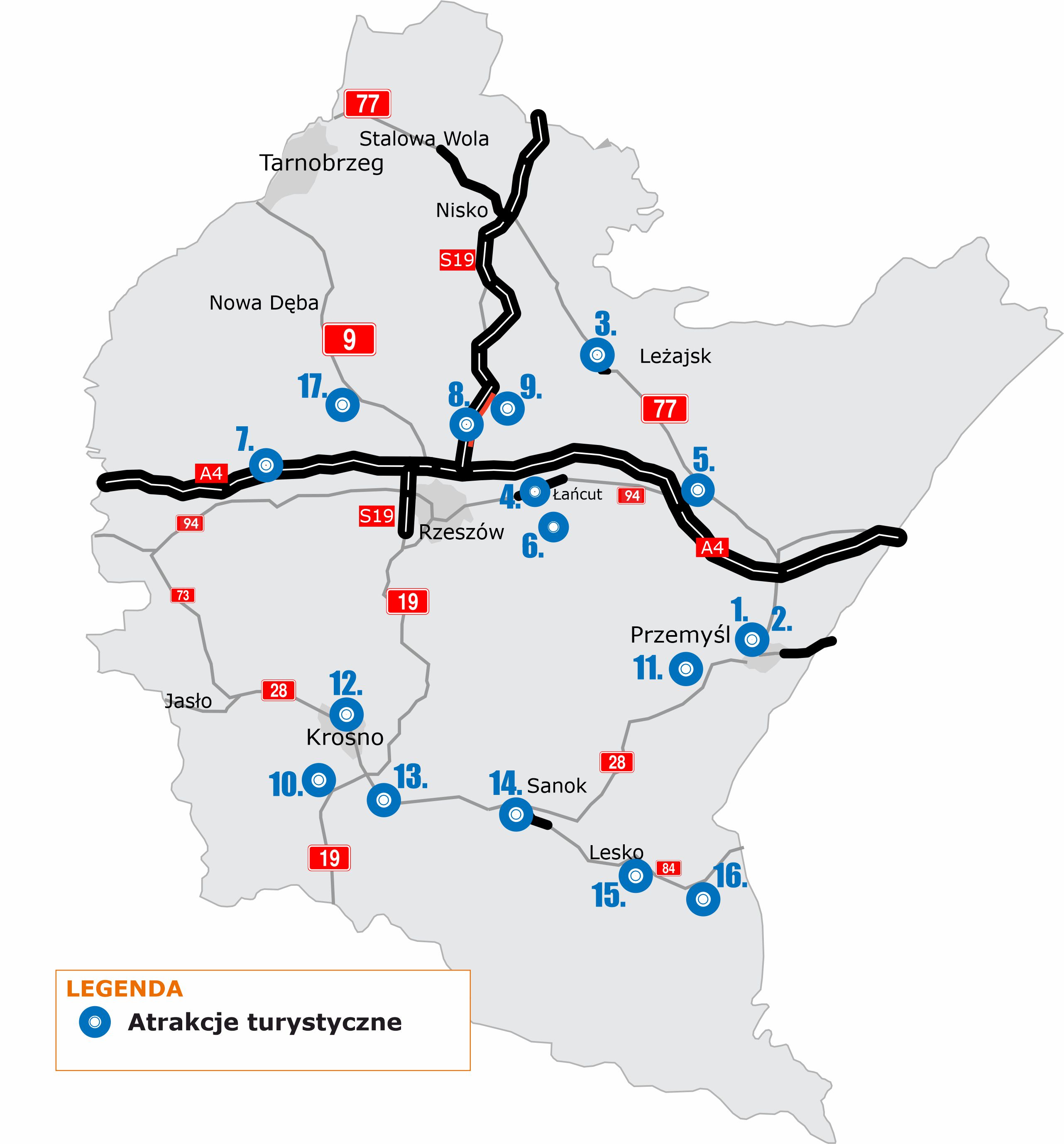 Atrakcje turystyczne przy głównych trasach Podkarpacia