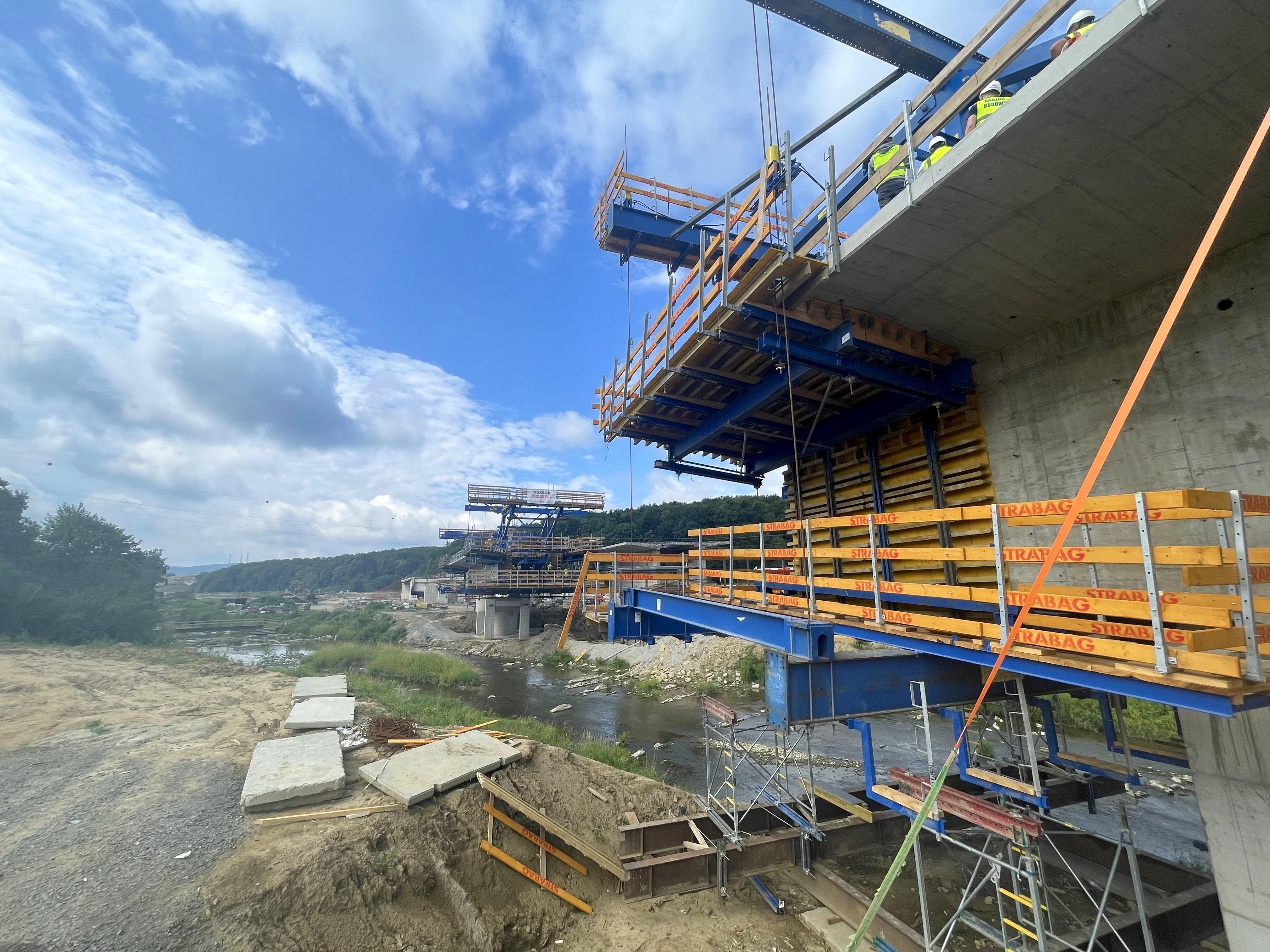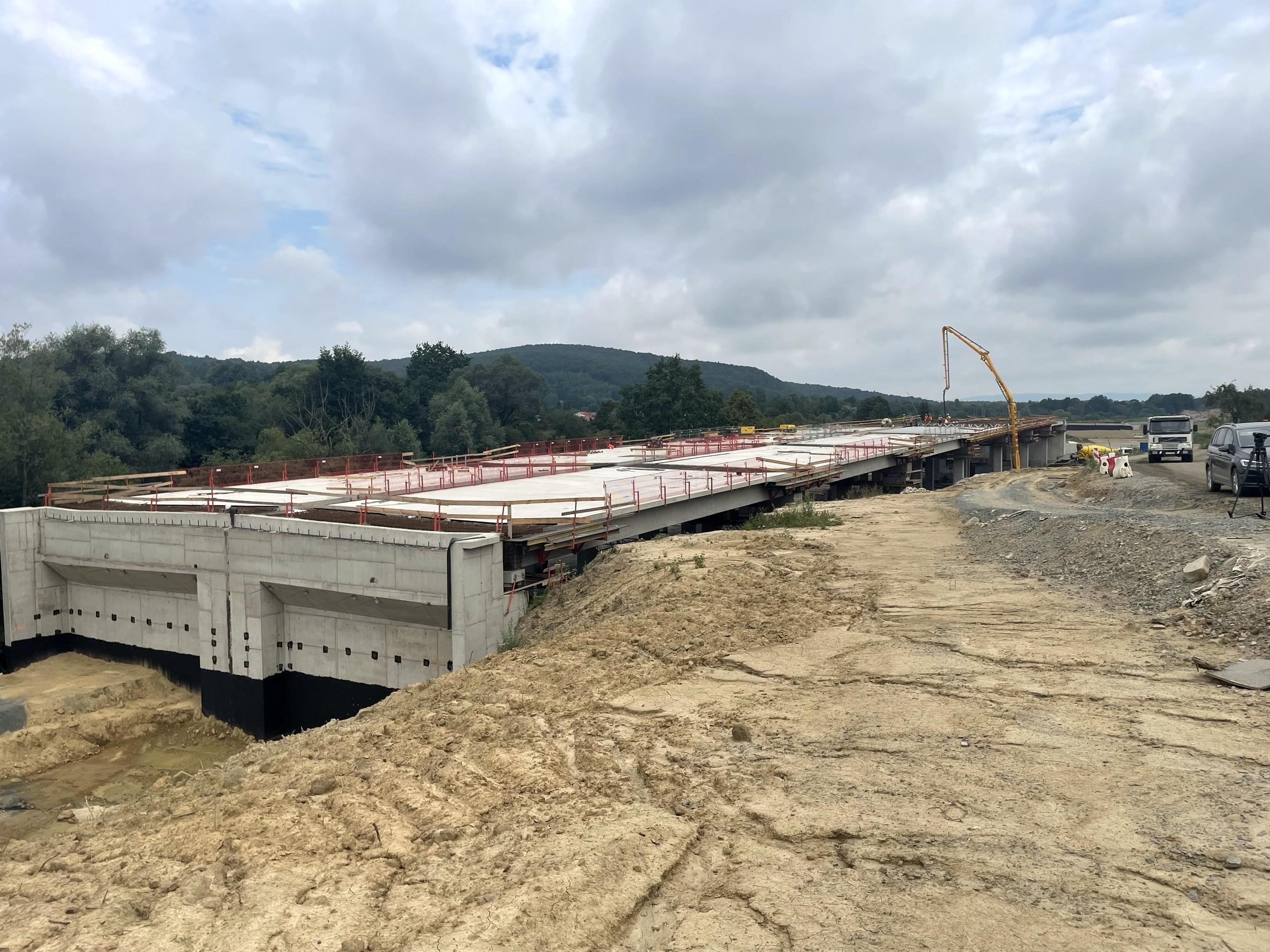 Z dużą intensywnością kontynuowane są także prace w branży mostowej, m.in. w ramach budowy estakady ES 2.2 w m. Równe - ułożono belki podłużne, uzbrojono znaczną część ustroju nośnego oraz zabetonowano 6 z 14 segmentów przęseł. Na obiekcie ES 2.3 w m. Zboiska trwa wykonywanie przęseł metodą nawisową z wykorzystaniem złożonych wózków CFT. Na wielu obiektach trwa wykonywanie zasypek inżynierskich.