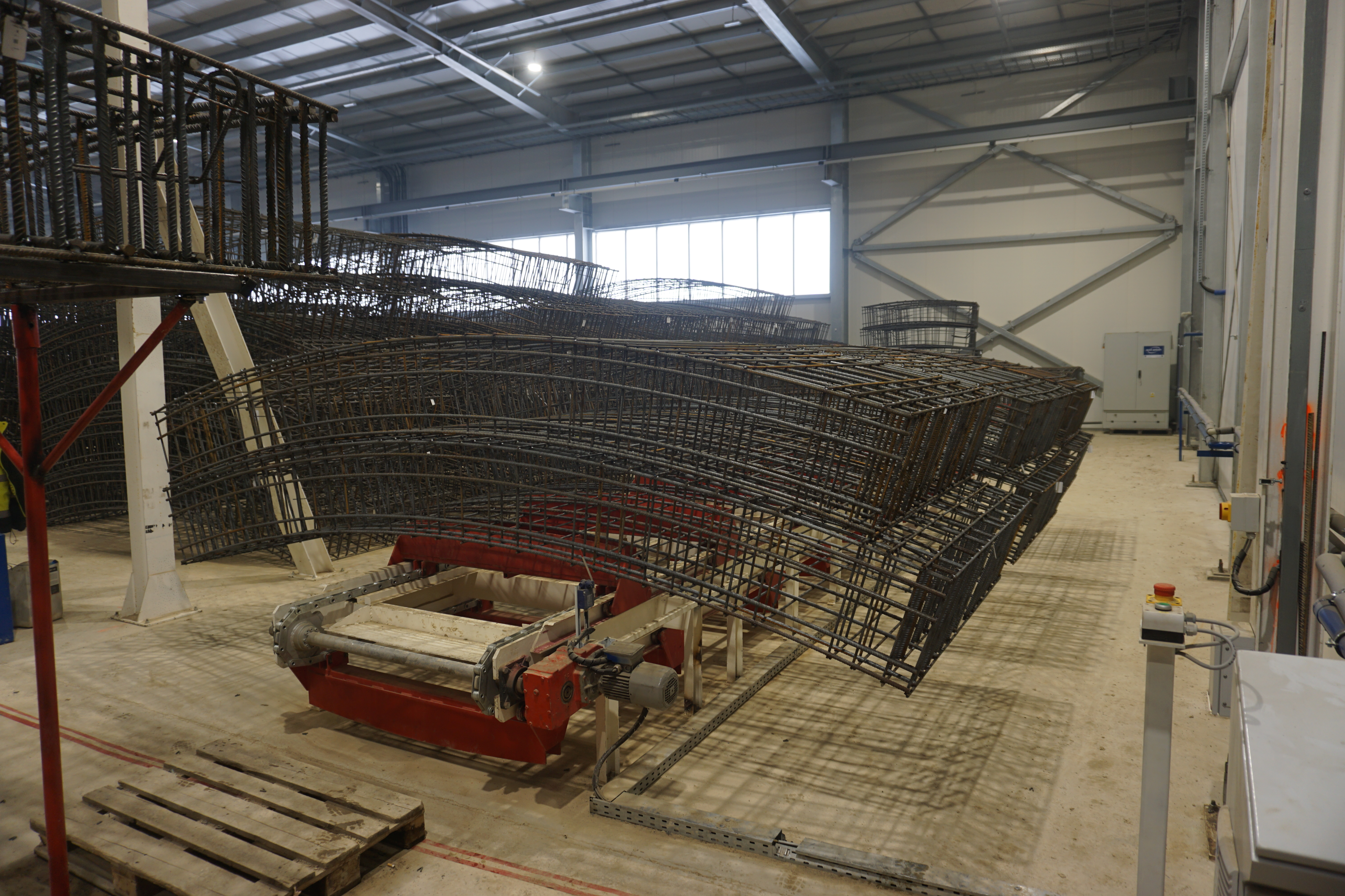 Halę wyposażono w linię produkcyjną, 4 suwnice (największa ma udźwig 60 t) i węzeł betoniarski. W celu uruchomienia produkcji konieczne było uzyskanie pozwoleń z Urzędu Dozoru Technicznego dla suwnic, a także instalacji pary wodnej oraz zasilania wytwornic pary wodnej (komora naparzania). Przy budynku wykonano również plac składowy mieszczący 550 pierścieni, po 10 elementów prefabrykowanych każdy.