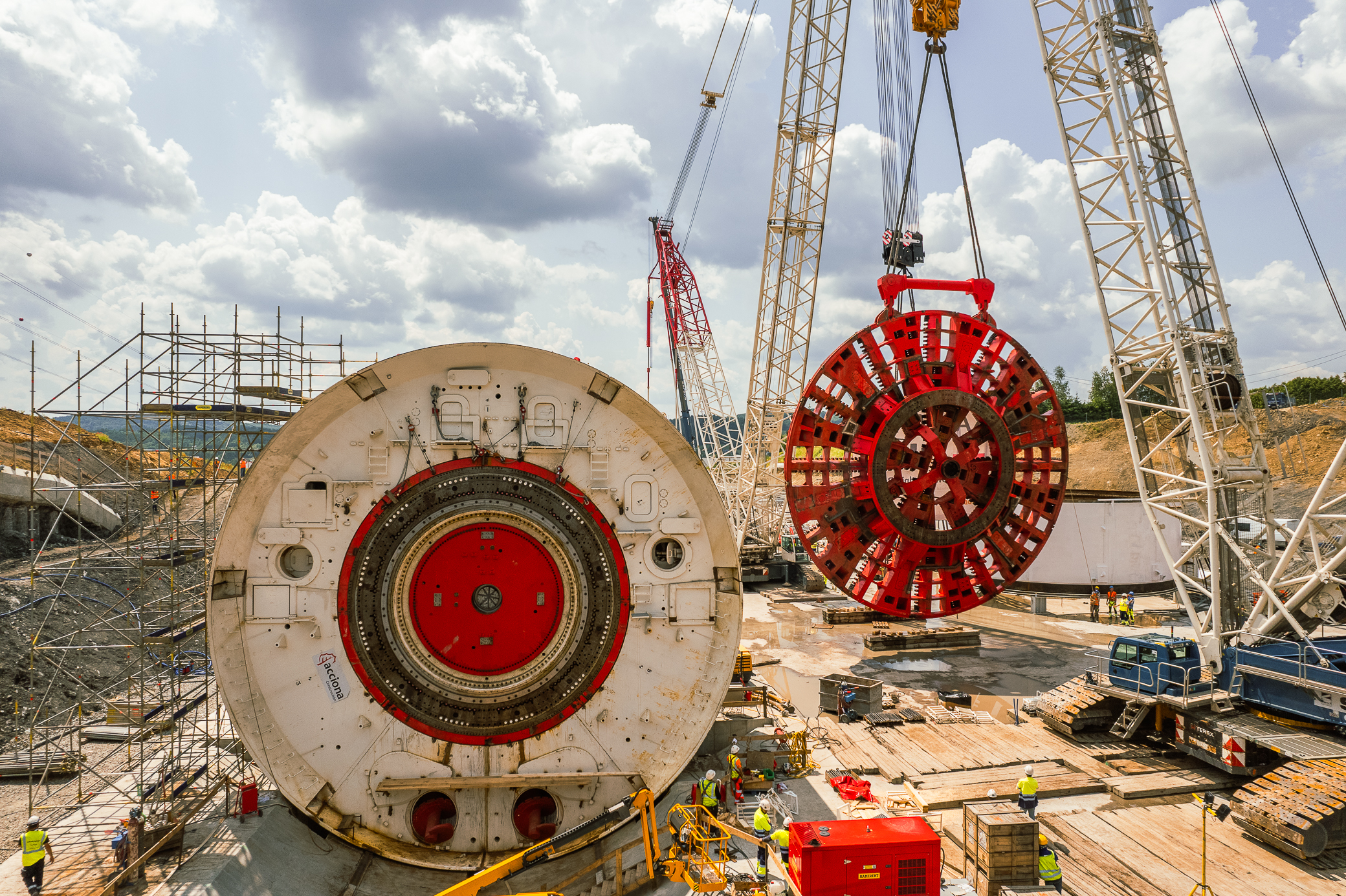 Po wyzwaniu, jakim był transport Karpatki - taką nazwę dla maszyny drążącej wybrali w głosowaniu internauci - nadszedł czas na jej montaż. Do przenoszenia elementów wykorzystywane były dwa żurawie gąsienicowe o udźwigu 650 i 300 t. Teraz oba zastosowano do zamontowania ważącej 400 ton tarczy skrawającej. Potwierdzeniem ogromnej skali realizowanego zadania są podstawowe dane dot. samej maszyny: średnica - 15,16 metra, masa całkowita - 4367 ton oraz zainstalowanych 471 narzędzi służących do wiercenia. TBM (tunnel boring machine) będzie drążyć na głębokości ponad 100 metrów, a jej maksymalny nacisk wynosi 31 700 ton.