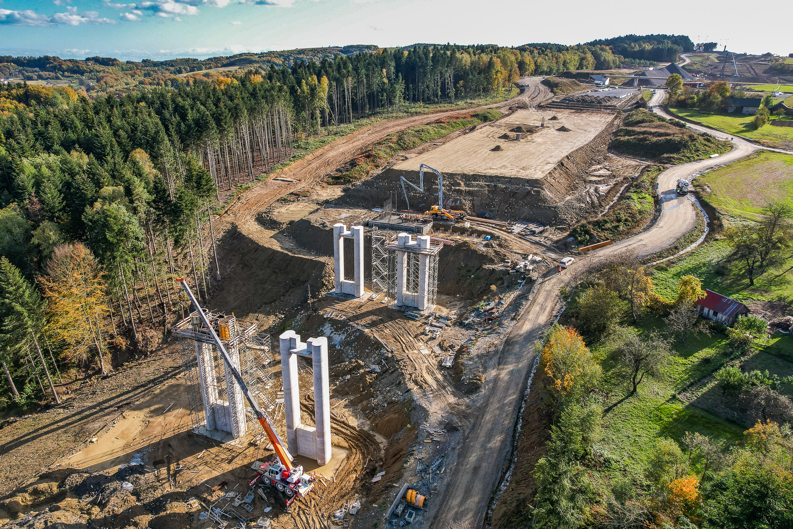 W najbardziej spektakularnym miejscu na budowie, najwyższej w Polsce estakadzie ES-26 usytuowanej pomiędzy miejscowościami Żarnowa i Godowa, kontynuowane były prace związane z budową kolejnych etapów podpór. Na najwyższych podporach dla jezdni prawej zabetonowane zostały pierwsze segmenty trzonów ich korpusów do wysokości około 10 m.