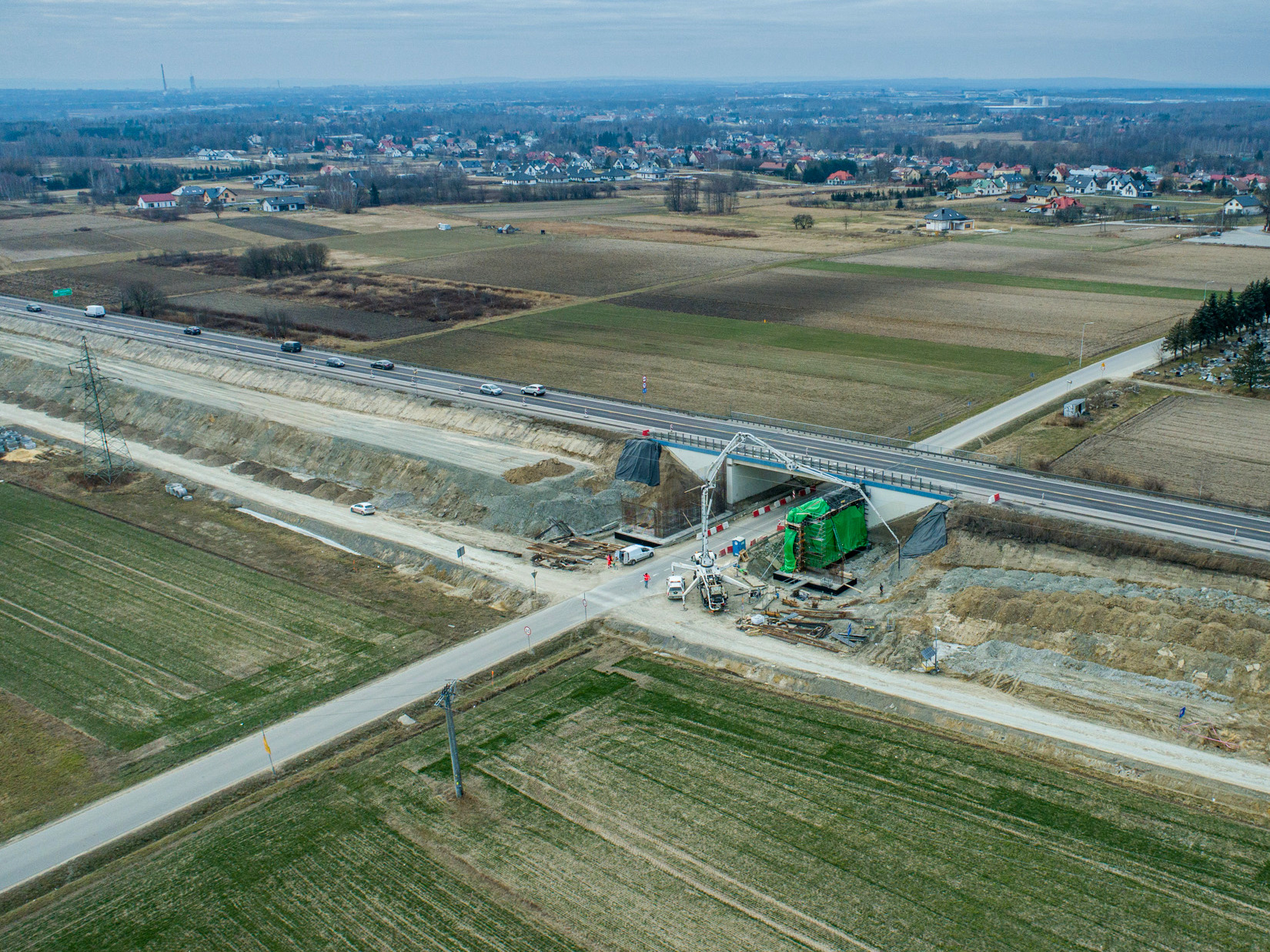 W najbliższym czasie największy nacisk Wykonawca położy na roboty związane z konstrukcją nawierzchni, a dokładnie z wbudowaniem podbudów z kruszywa łamanego oraz układaniem mieszanek mineralno-asfaltowych. W kwietniu br. planowane jest rozpoczęcie wbudowywania mieszanki mineralno – asfaltowej (MMA) oraz montaż barier w pasie rozdziału i na poboczach. W połowie maja br. Wykonawca planuje przełożyć ruch na drogę powiatową DP1976R pod obiekt WS 2/2. Pozwoli to na kontynuowanie budowy nasypu drogowego przed oraz za obiektem. Realizowane będą także roboty związane z betonowaniem elementów mostowych oraz prace wykończeniowe na obiektach.